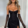 Sparkle into the night wearing the show stopping Pixie mini dress (black sparkle), a dress cut from our special custom mesh with all-over sparkle detail. The fit skims over your figure, flaring ever so slightly at the skirt with a small split for just the right amount of leg. Pixie is complete with underwired cups to frame and lift the bust. Style with the Pixie gloves and your highest heels.