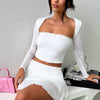 It's giving Ballet Core! The Pyper Crop offers bodycon fit, double lined material, lace detailing along the neckline and lettuce trim edges. Style her with the matching skirt and bolero and pair with some ballet flats!
