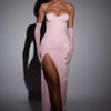 Elevated and eye-catching, more is more in the Trixie maxi dress. Cut from our special custom mesh with all-over sparkle detail, the fit skims over your figure, contouring the waist and body. The look is complete with underwired cups and a thigh high split. Dress it up with gloves, glam hair and your highest heels.