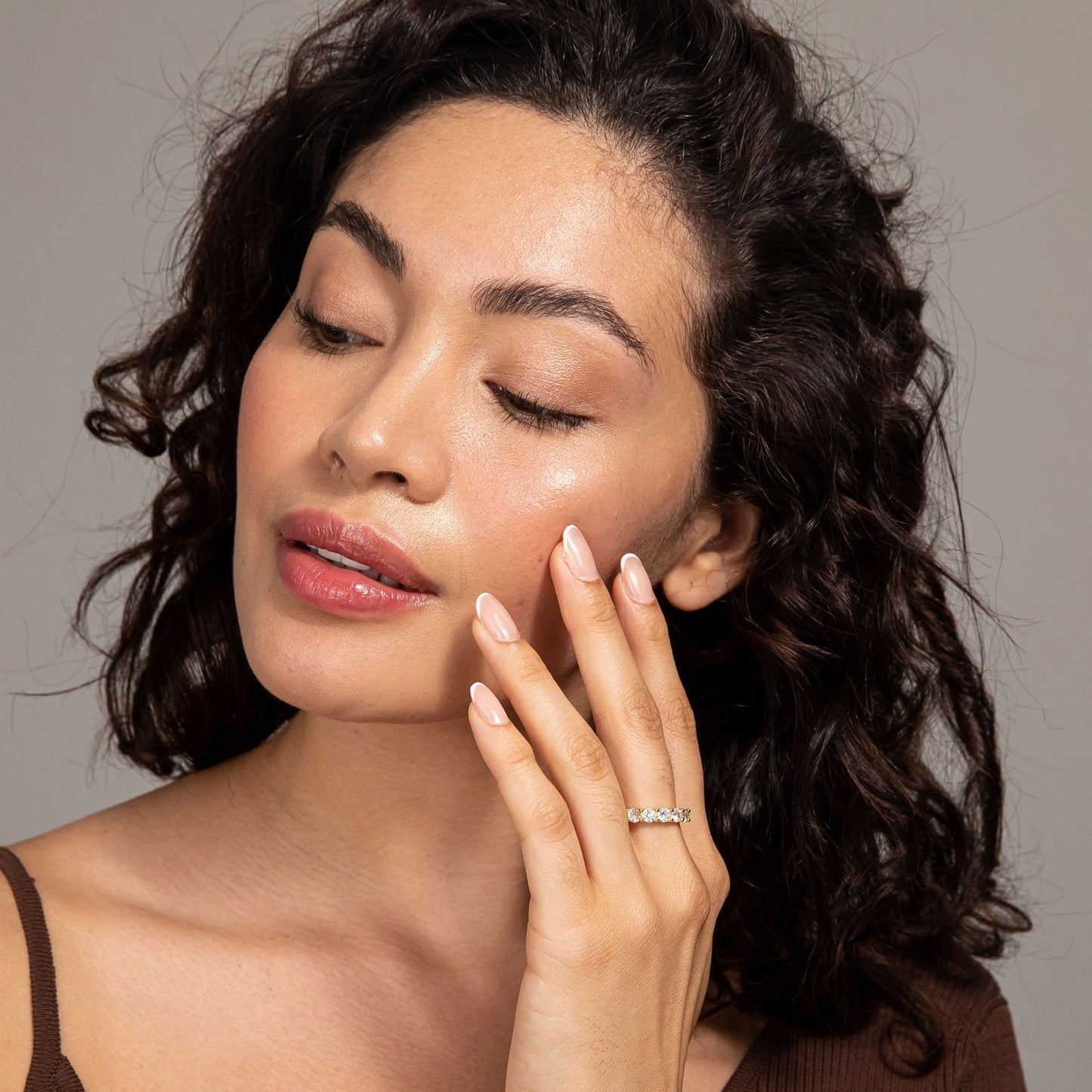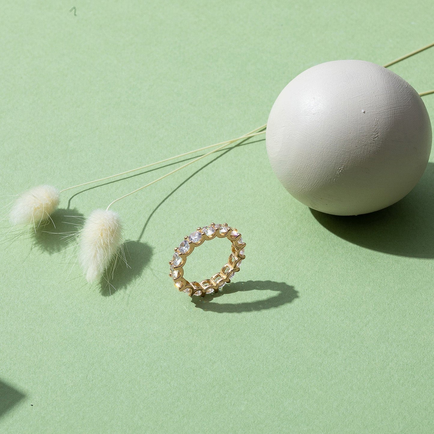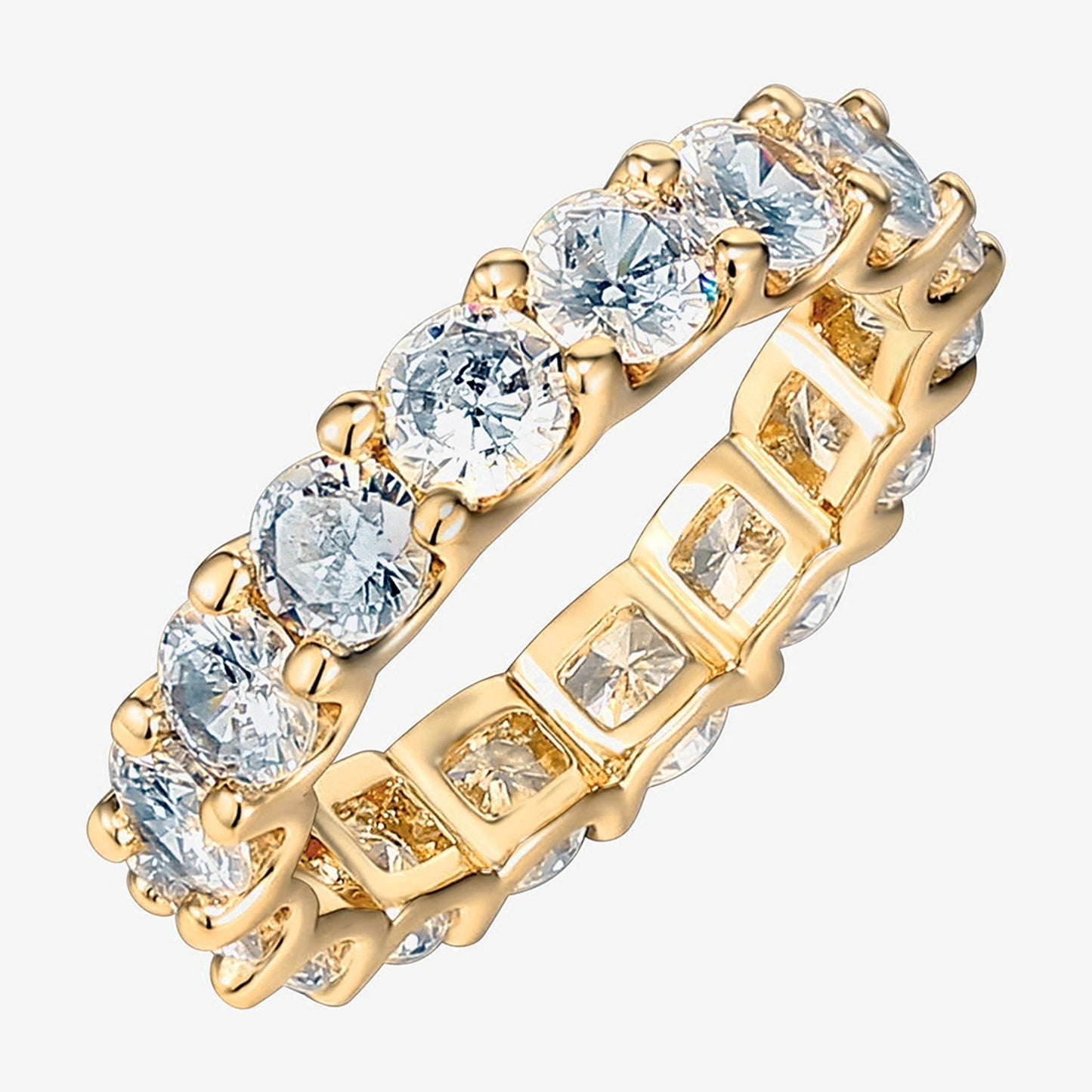 This 4mm stackable ring features the finest AAAAA quality gem-grade cubic zirconia. Designed for stylish outfits or perfect for traveling!