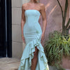 Enter your soft girl era in the Angelina maxi dress, crafted in our luxury non-stretch cotton that hugs the body for the silhouette of dreams. This strapless design is complete with a voluminous frilled high low skirt that's super pretty and playful.