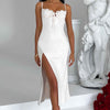 Looking for a timeless, romantic fit perfect for date night and beyond? Enter the Ardelle midi, a stunning design made in bias cut satin which skims over the figure and drapes gently out at the hem. This stunning design features gathered, underwired cups with pretty peekaboo lace detail, alongside tie detail to the bust and thin straps. The look is complete with a cut out back and a thigh high split for added sexiness. Wear yours with soft waves and mules.
