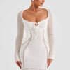 The cute crochet Dezi dress is sure to be your new fave mini, made in our soft crochet knit with a slight stretch that moulds to your figure. With long sleeves and and a tie detail bust, wear yours with heeled mules and sleek waves.