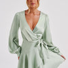 Ellis is playful, flirty and the ONLY dress to have in your wardrobe this season. With stunning sleeves that are super voluminous and a sexy plunge neckline, this wraparound style is complete with a flared skirt and looks amazing paired with knee high heeled boots.