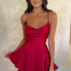 Radiate in the Florence playsuit, a design cut from our luxury stretch satin that hugs the body like a glove. With a cowl neck and ruffle detail shorts, style yours with waved hair and a mini bag.