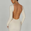 Simple but stunning, the new Liana mini will become the buttery soft staple you can't live without. Double lined to make you feel fine, the super stetchy, contouring fabric snatches back into shape and moves with your body for your best fit ever. This long sleeve design features a super low, sexy scoop back and high neckline. Style yours with gold hoops, a cropped blazer and heeled mules.