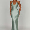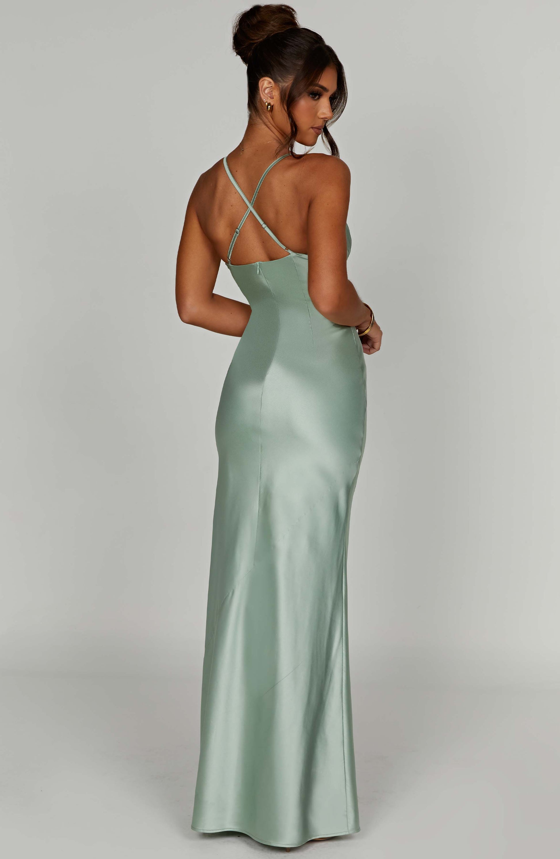 The sleek, sexy lines of Miriam make it the perfect choice for the most special occasions. Crafted from our premium bias cut satin that skims over the figure, this design drapes beautifully at the skirt and skims the floor with a maxi length. The look is is finished with a plunge neckline and pretty pleated cups.