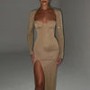 Sparkle all night long in the Nadia maxi, the only occasion dress you'll wanna wear this season. Crafted in our stunning sparkle mesh that's super stretchy for your comfort, this design is complete with a sexy thigh high split, long sheer sleeves and a structured, cupped bust for your best cleavage yet. Style with glittering heels and glam waved hair.