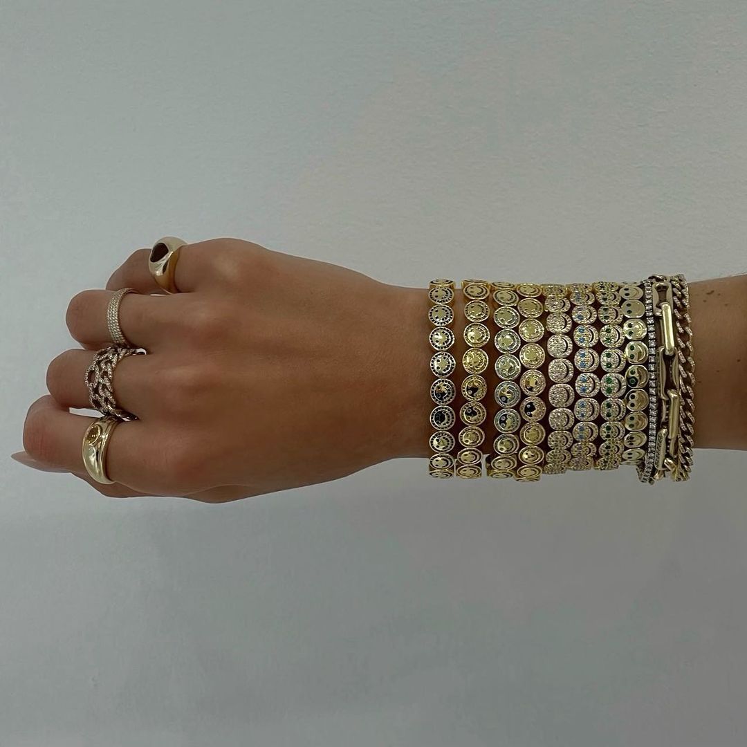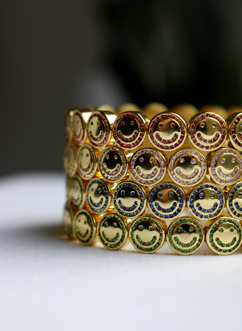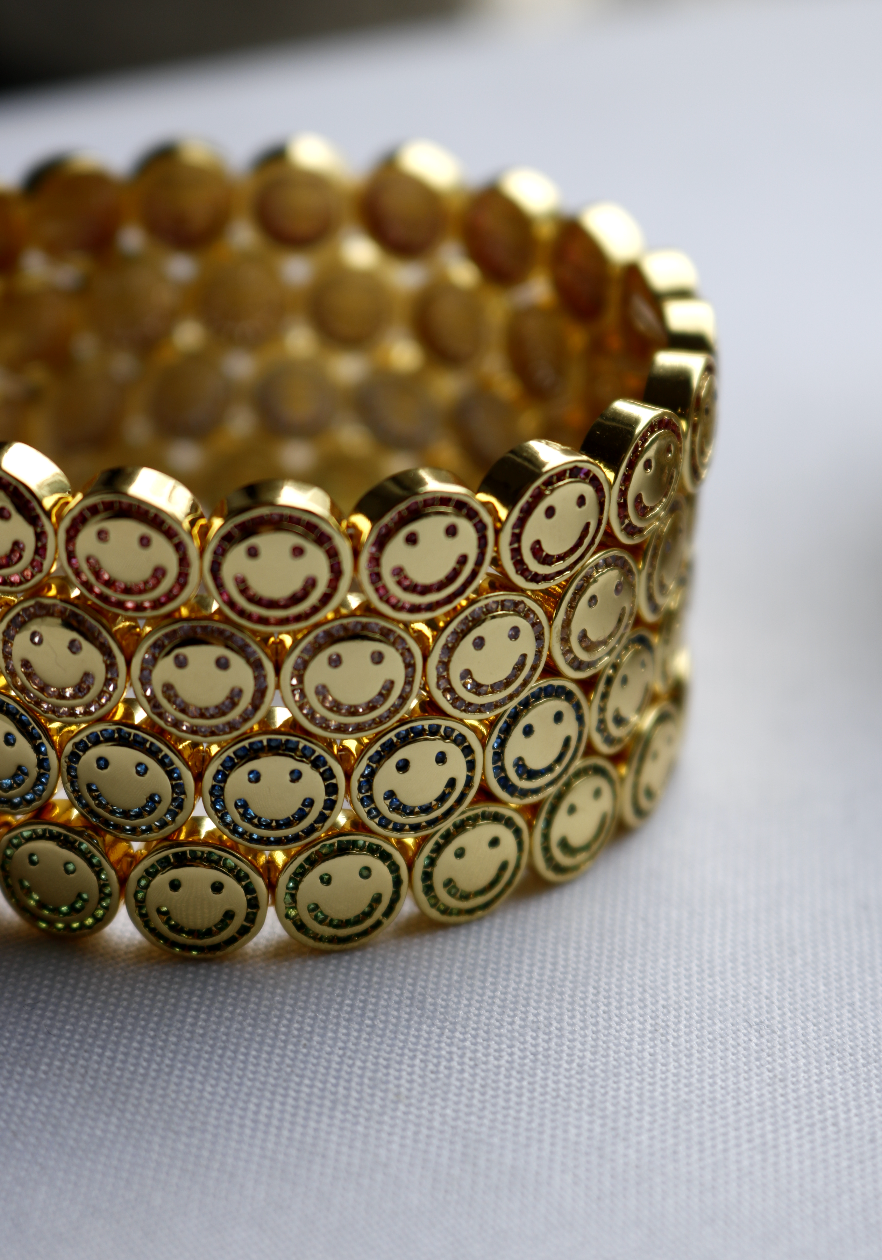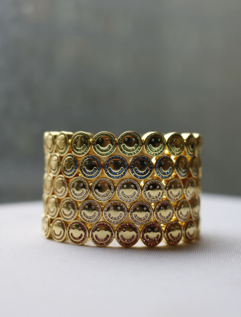 Introducing The Happy Face 2.0 - our bestselling bracelet reimagined. Channel set with cubic zirconia stones, this wristband is the perfect addition to your current Lisa Gozlan stack.