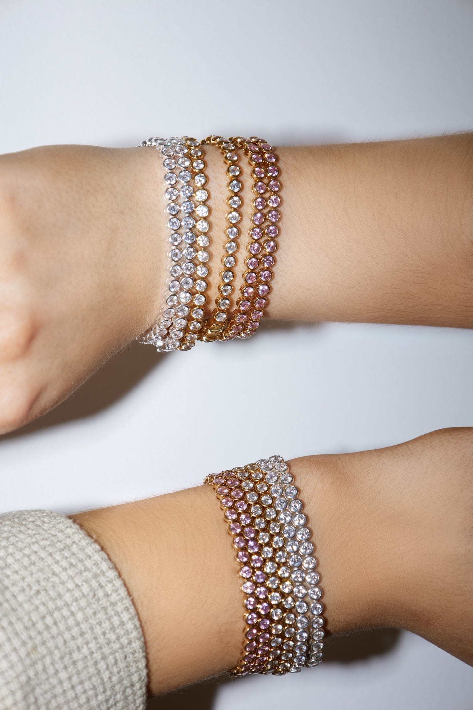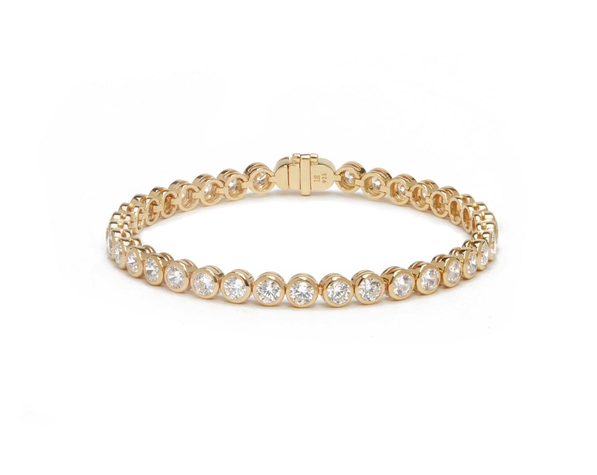 Meet your new Bez-friend; handcrafted in Sterling Silver with the option of 18K gold plating. Each bracelet features 7 inches of hand-set AAA Cubic Zirconia stones. Box closure with an extra safety clasp to ensure she never leaves your side.