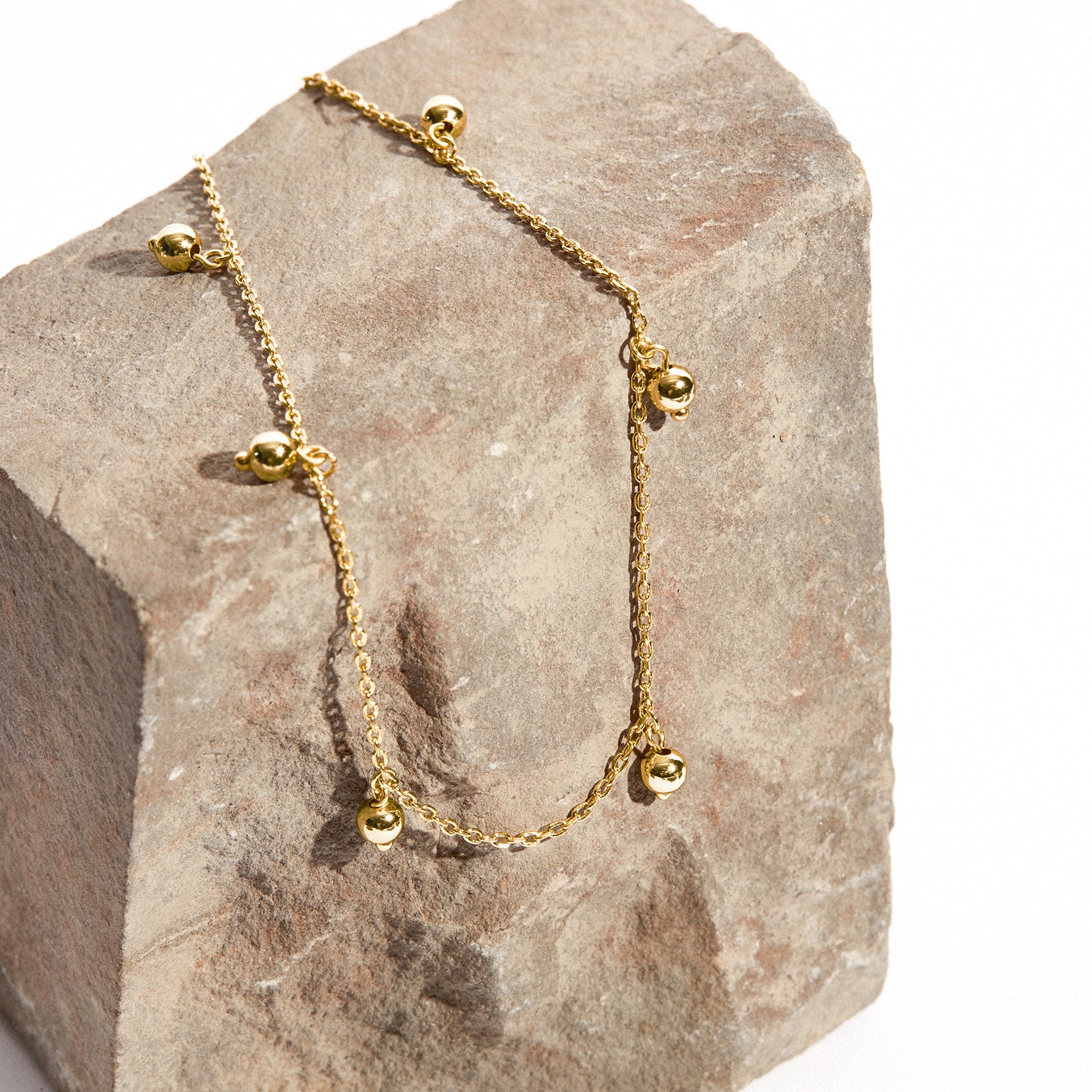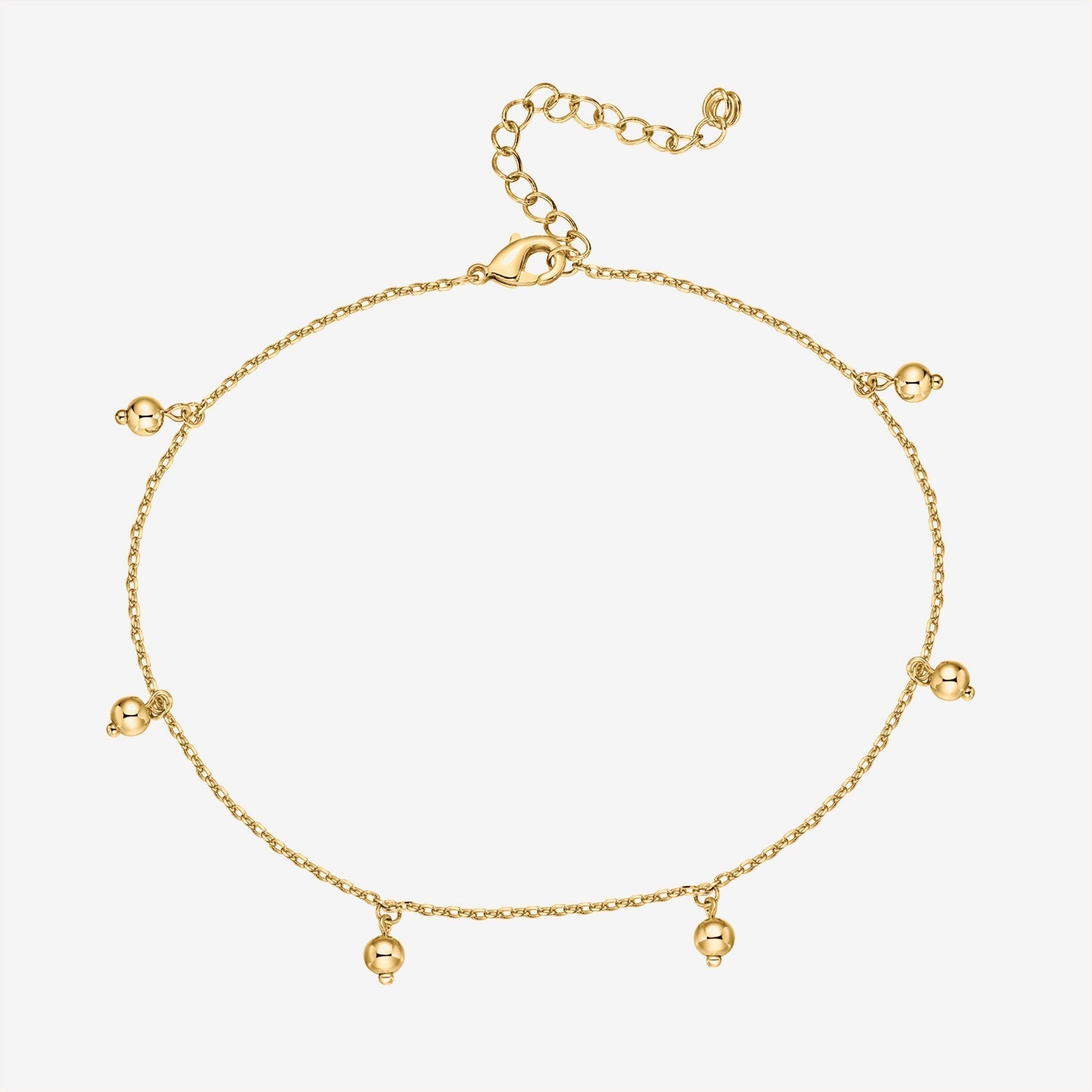 We love a good piece of dainty jewelry. This pretty gold anklet has five charms that sit beautifully on your ankle. Make a subtle statement by adding this piece to any outfit.