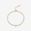 This simple yet stylish double-layered chain gold cross bracelet is 6.5" long with a 1" extender to comfortably fit all wrist sizes.