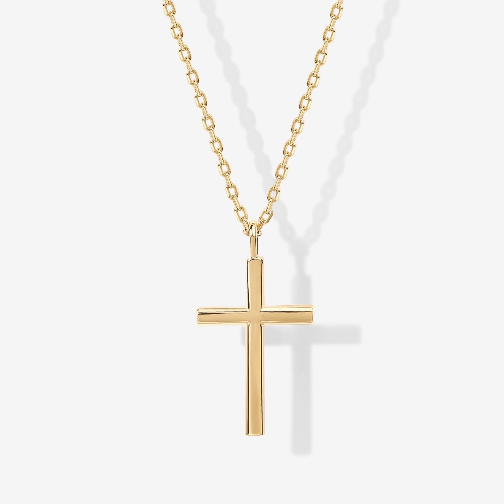 This small yet stunning gold cross necklace measures 18mm x 12mm and features a 19" adjustable sliding clasp chain that will comfortably fit all neck sizes.