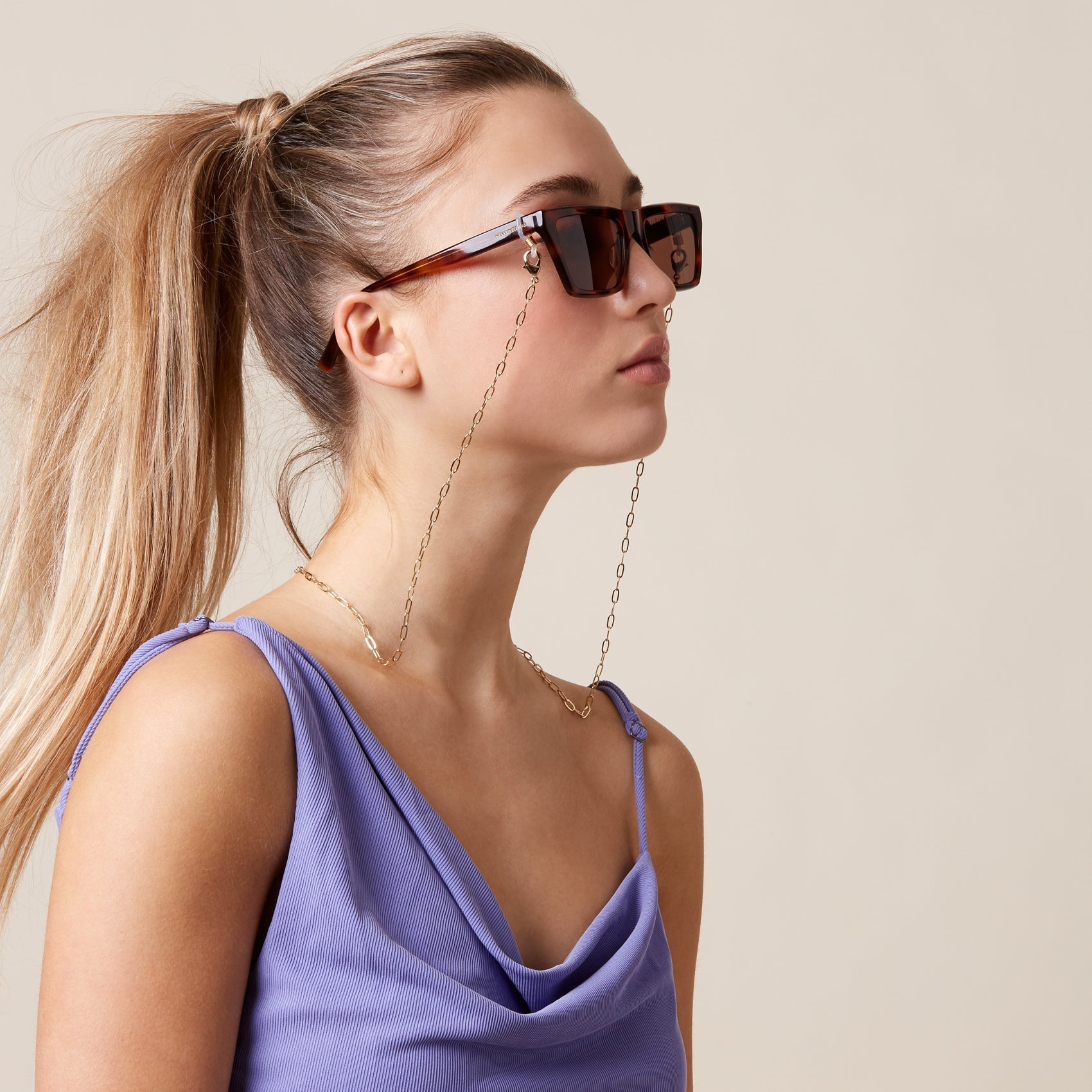 Never forget your Sunglasses or Eyeglasses at home again with our 14K Yellow Gold Plated Sunglasses / Glasses Chain!