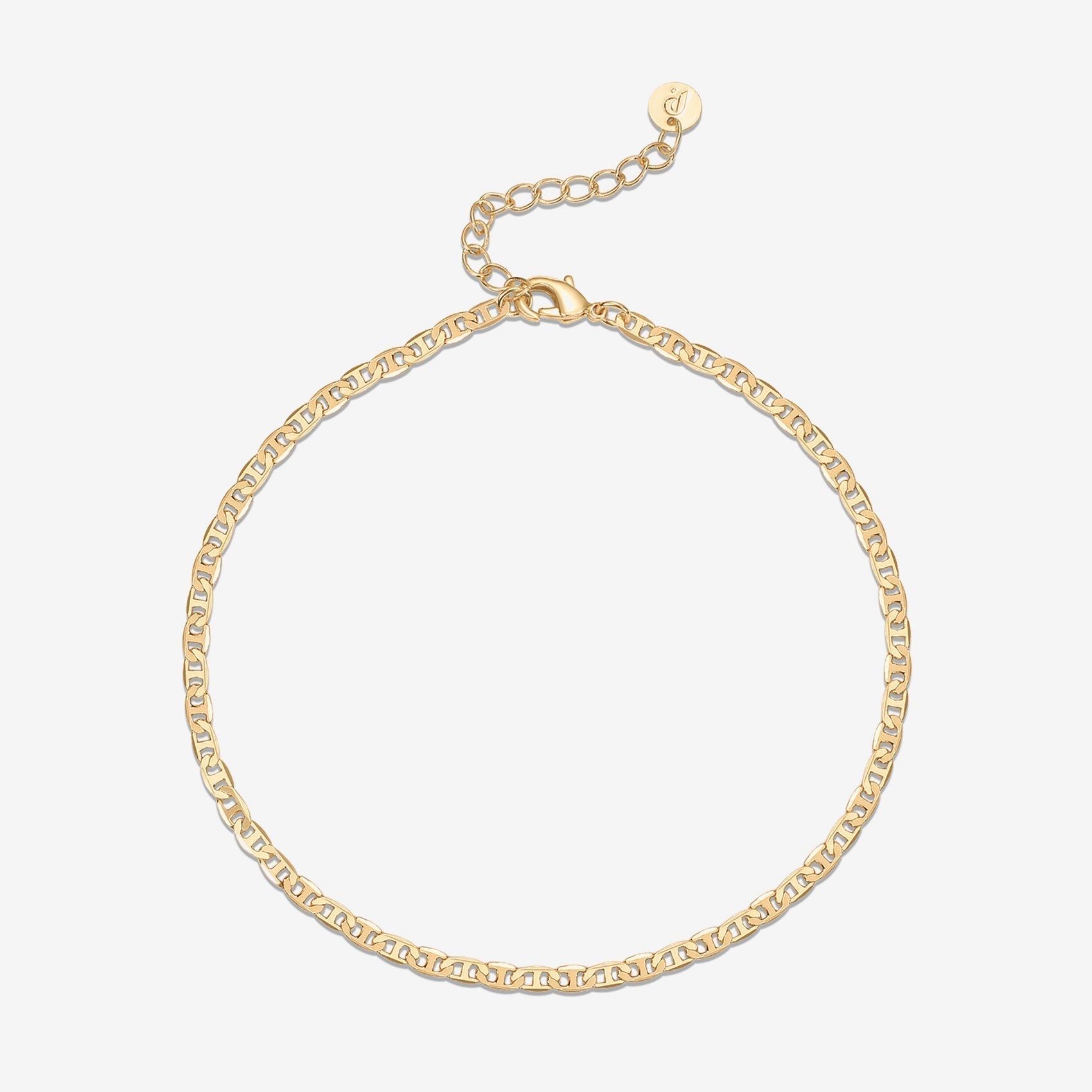 Make a statement with our flat Mariner Anklet. A stylish design to wear from day to night.