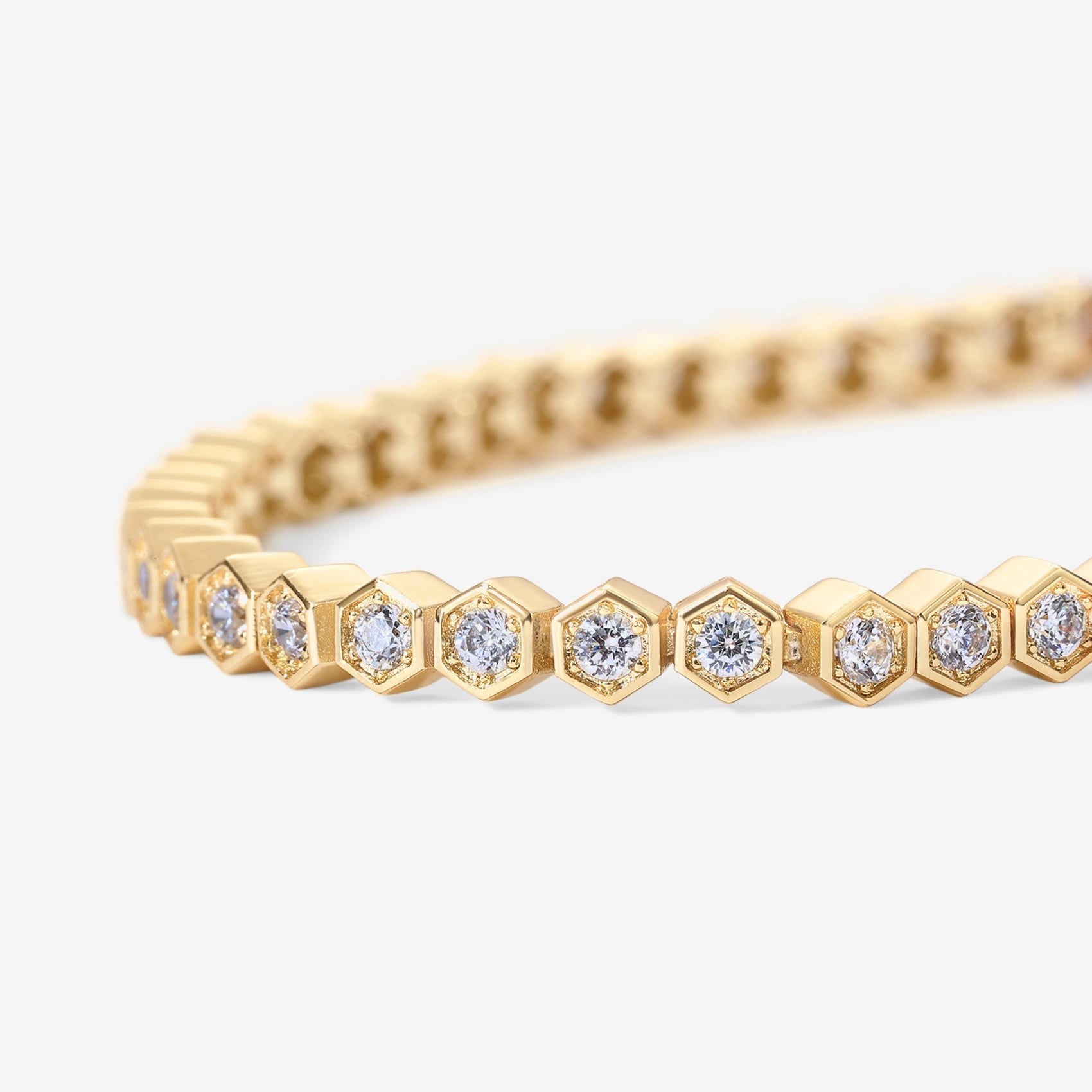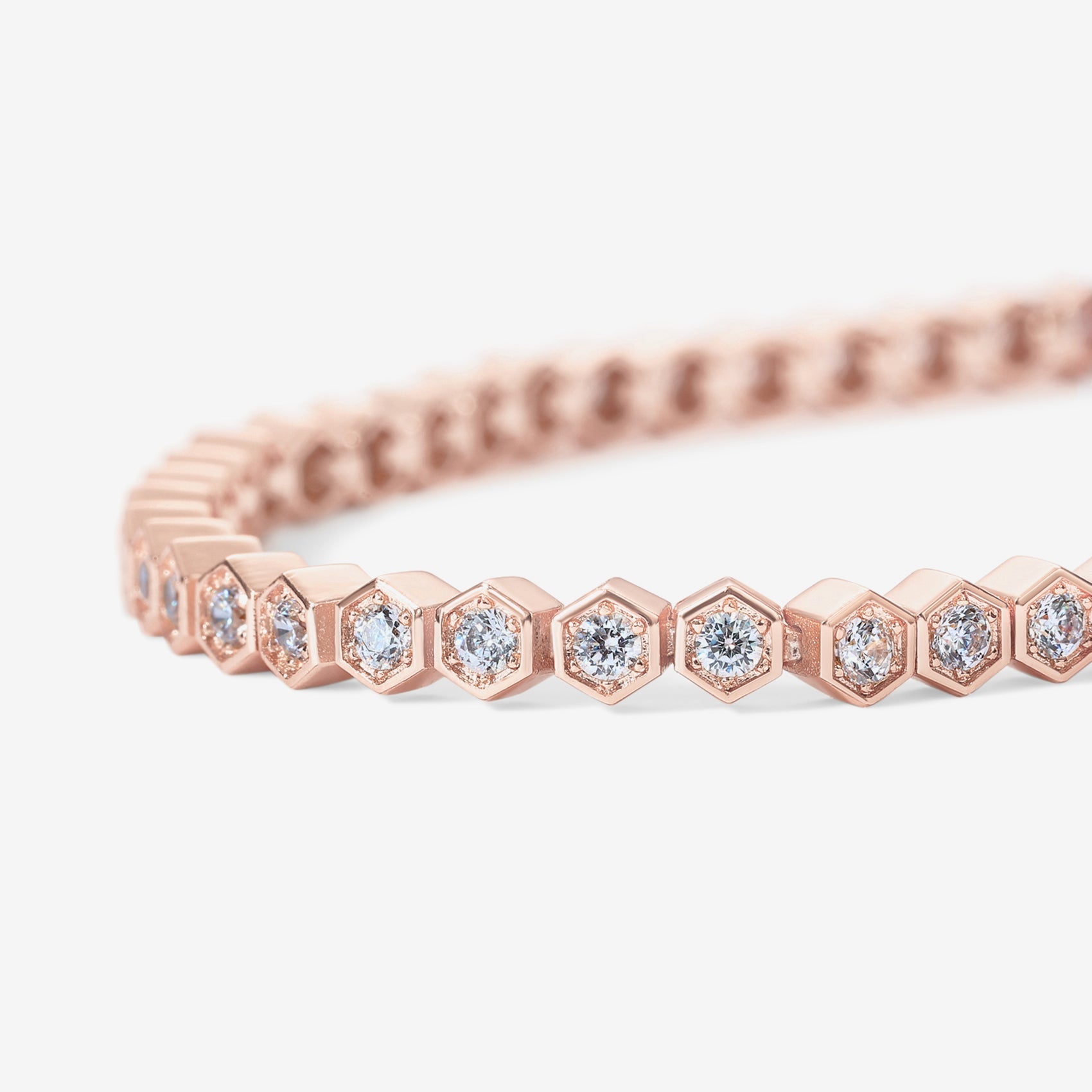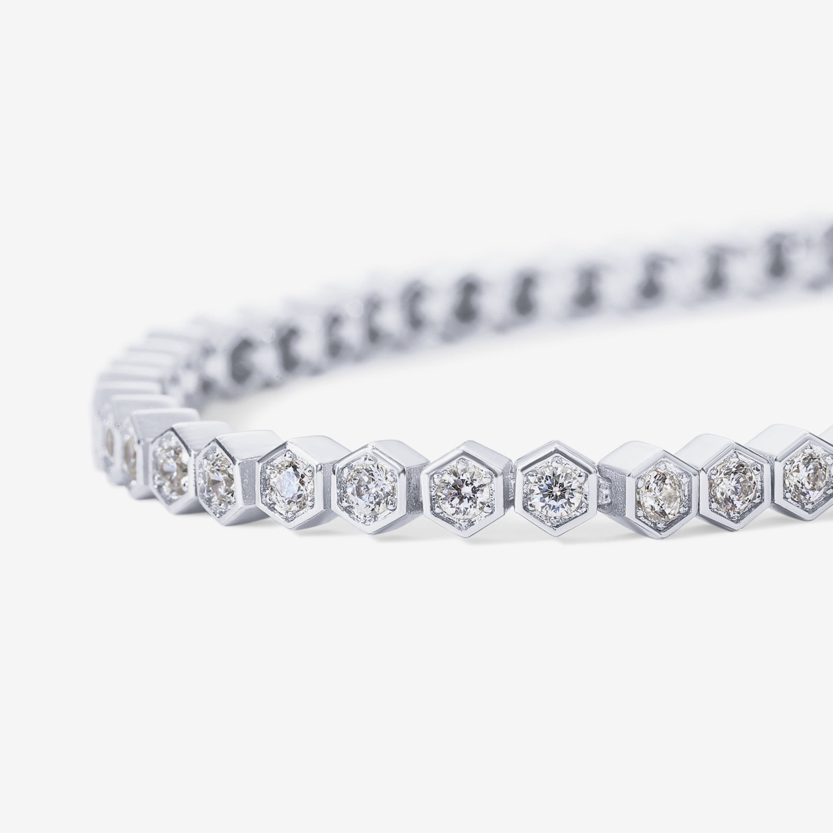 Tennis bracelet featuring round 2mm Honeycomb cubic zirconia stones in four-prong basket settings. It comes in sizes 6.5; 7.0; and 7.5 inches in length.