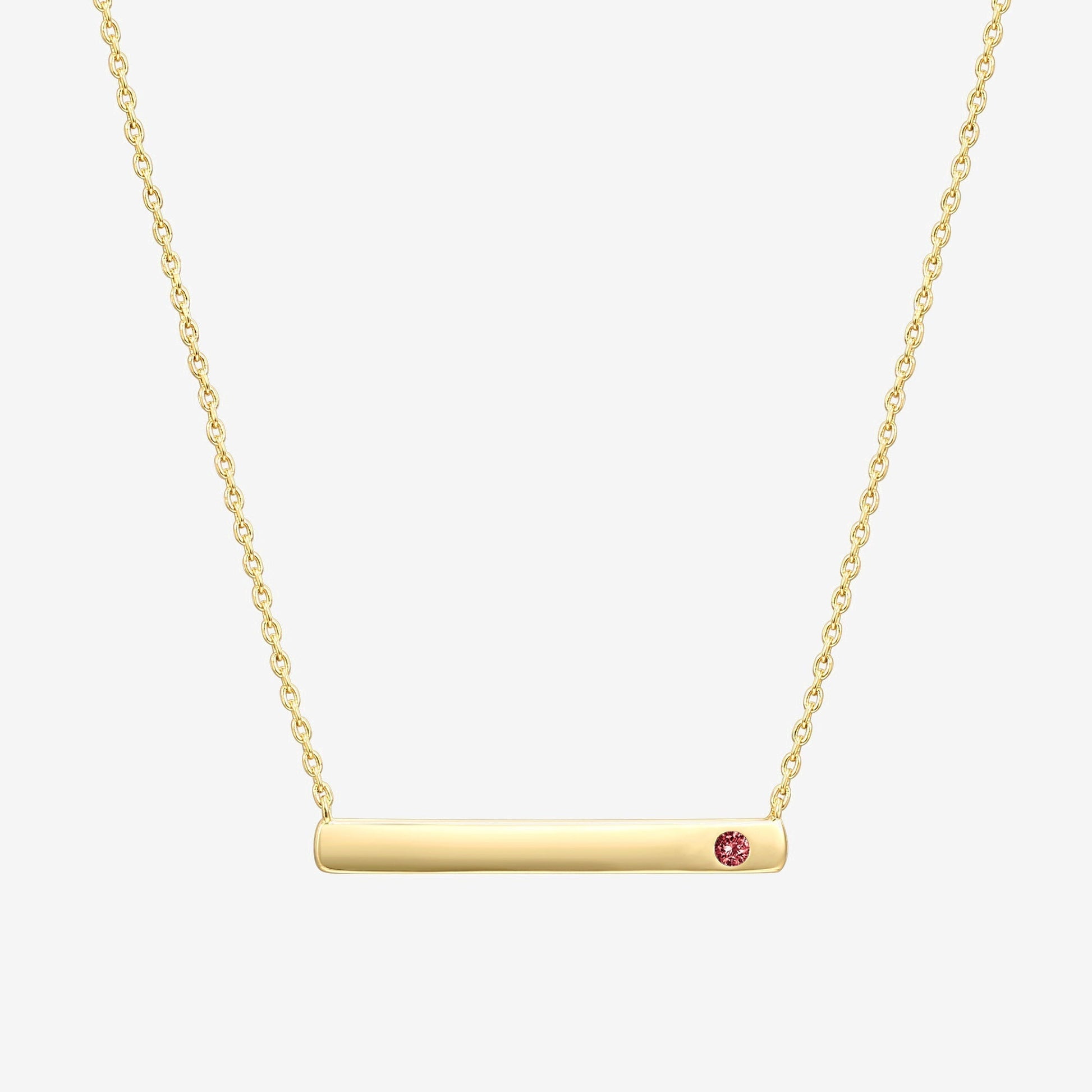 A sleek everyday piece with a personal touch. This beautiful bar necklace features a dainty birthstone set at the side making it a thoughtful gift that is universally loved.