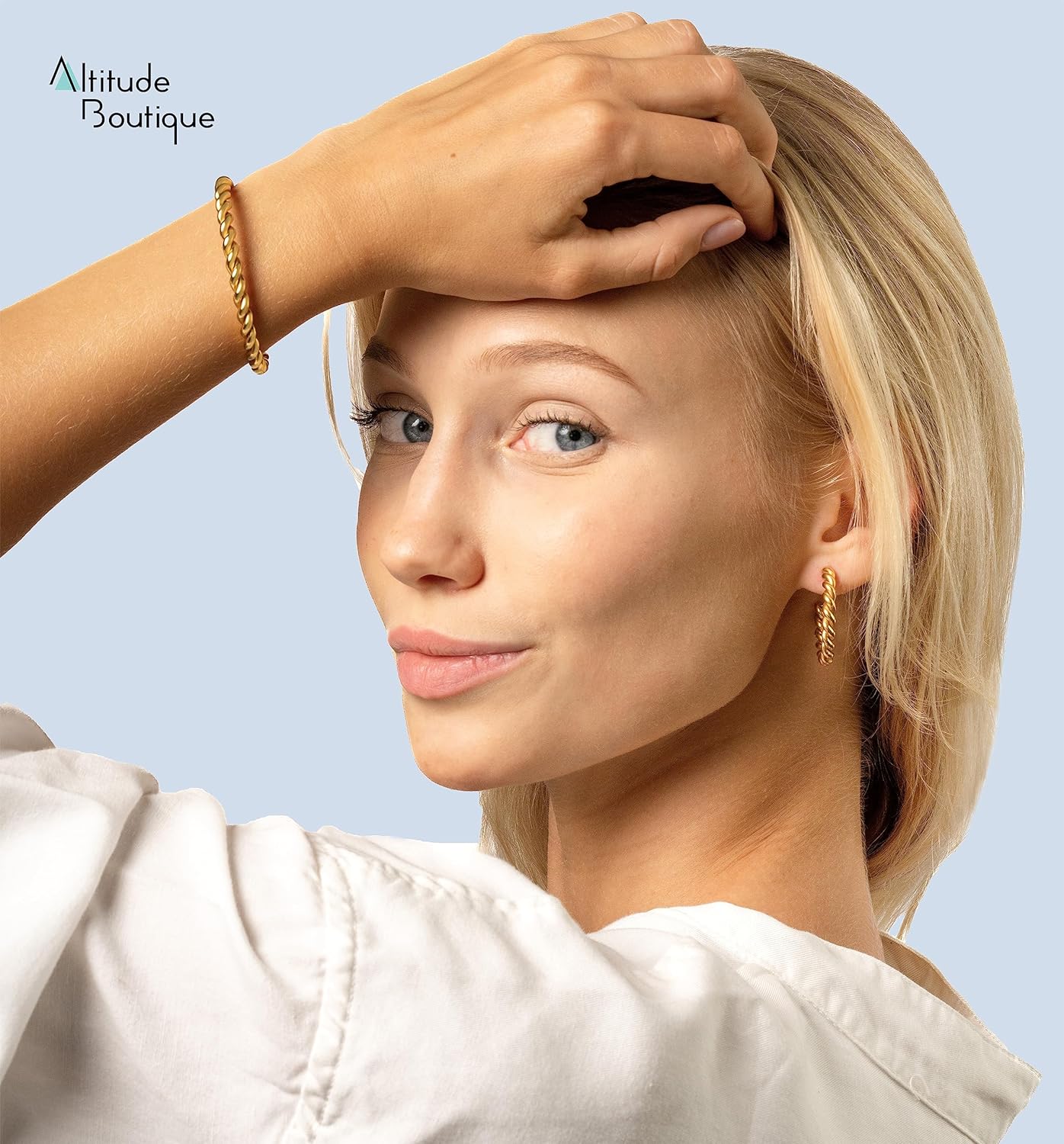 Elevate your jewelry game with the sophisticated and chic Classical Knot Bangle. Exquisitely crafted in recycled sterling silver and generously coated in a lustrous 14K gold finish, this bangle exudes elegance and style. Its intricate knot design adds a touch of artistry and symbolism to any outfit, making it a perfect statement piece for any occasion. Pair it with our equally stunning Classical Knot Statement Ring for a cohesive and fashionable look. Upgrade your accessory collection and showcase your edgy personality with this must-have bangle today. Add it to your cart now and earn bonus style points with every wear!