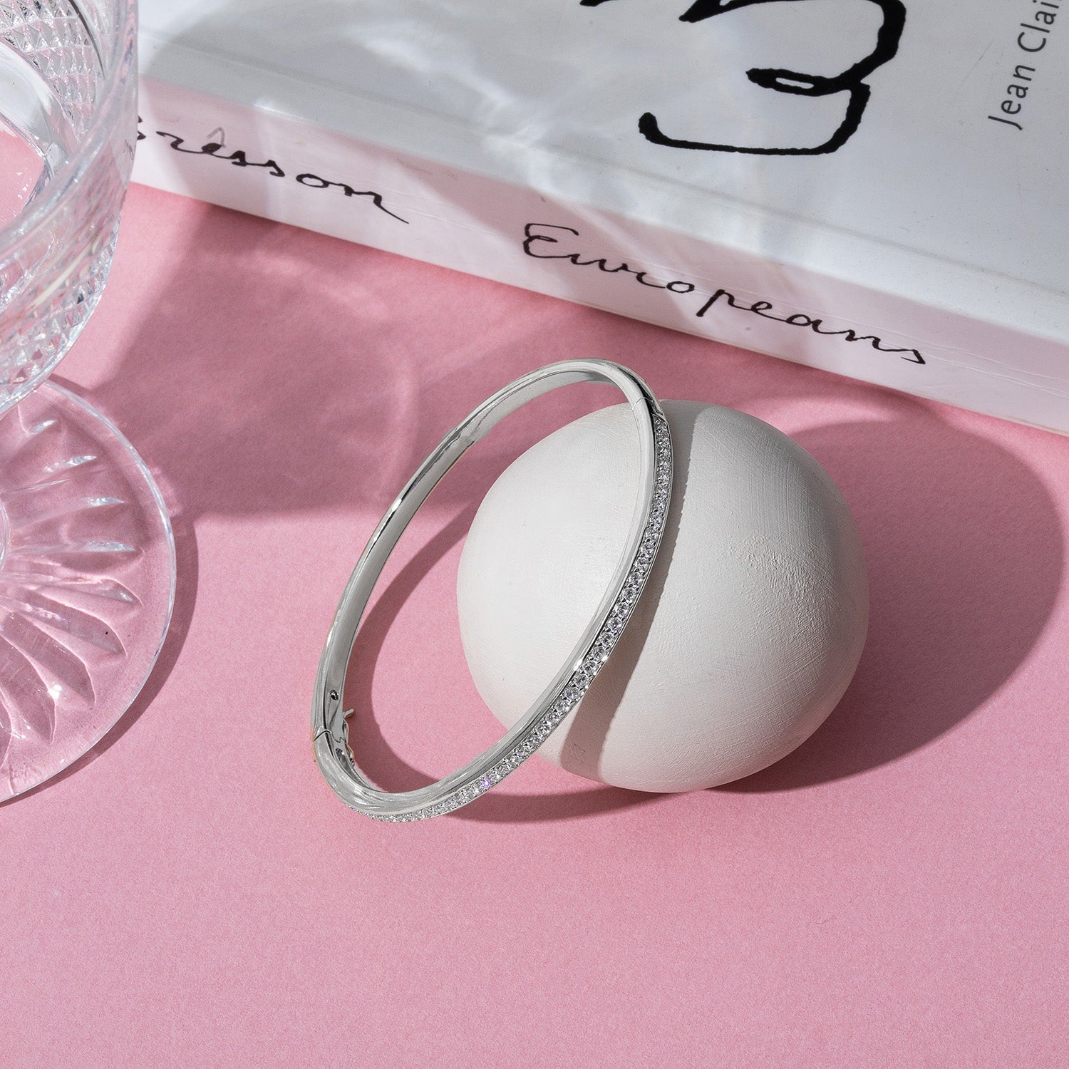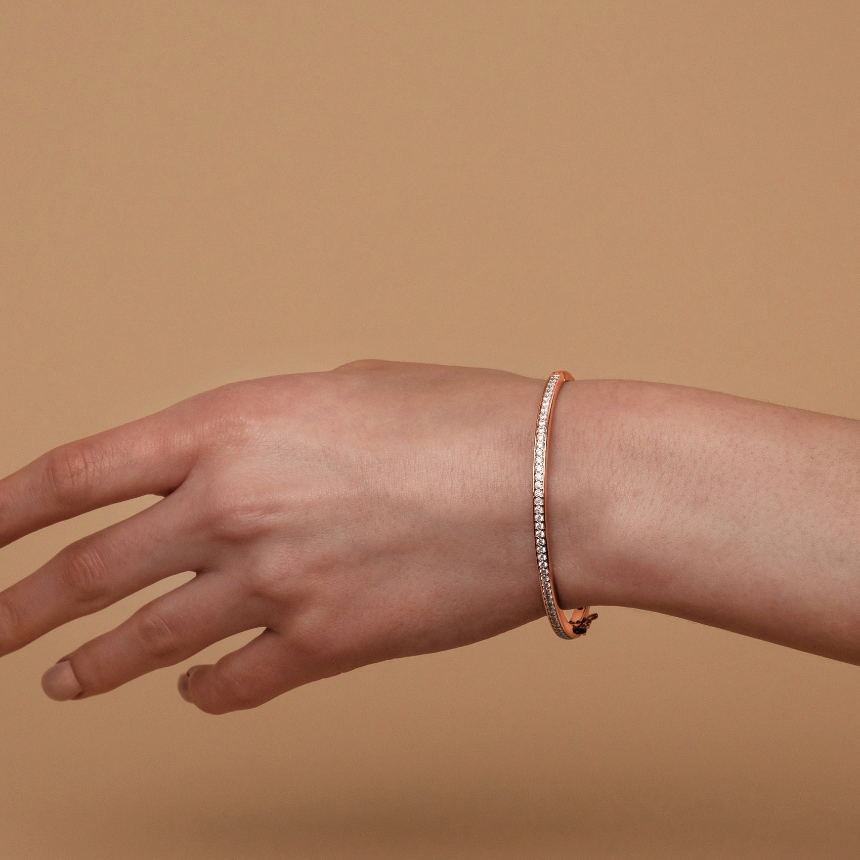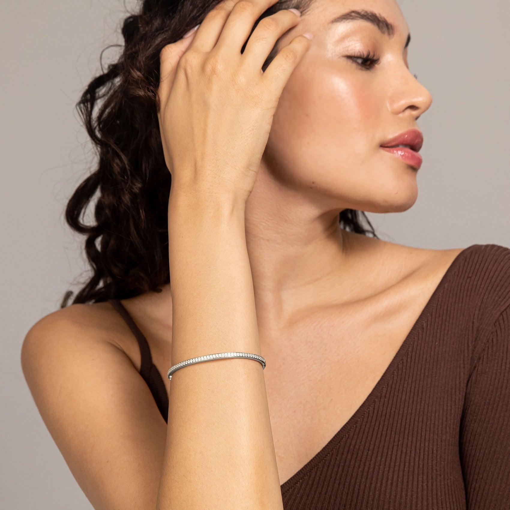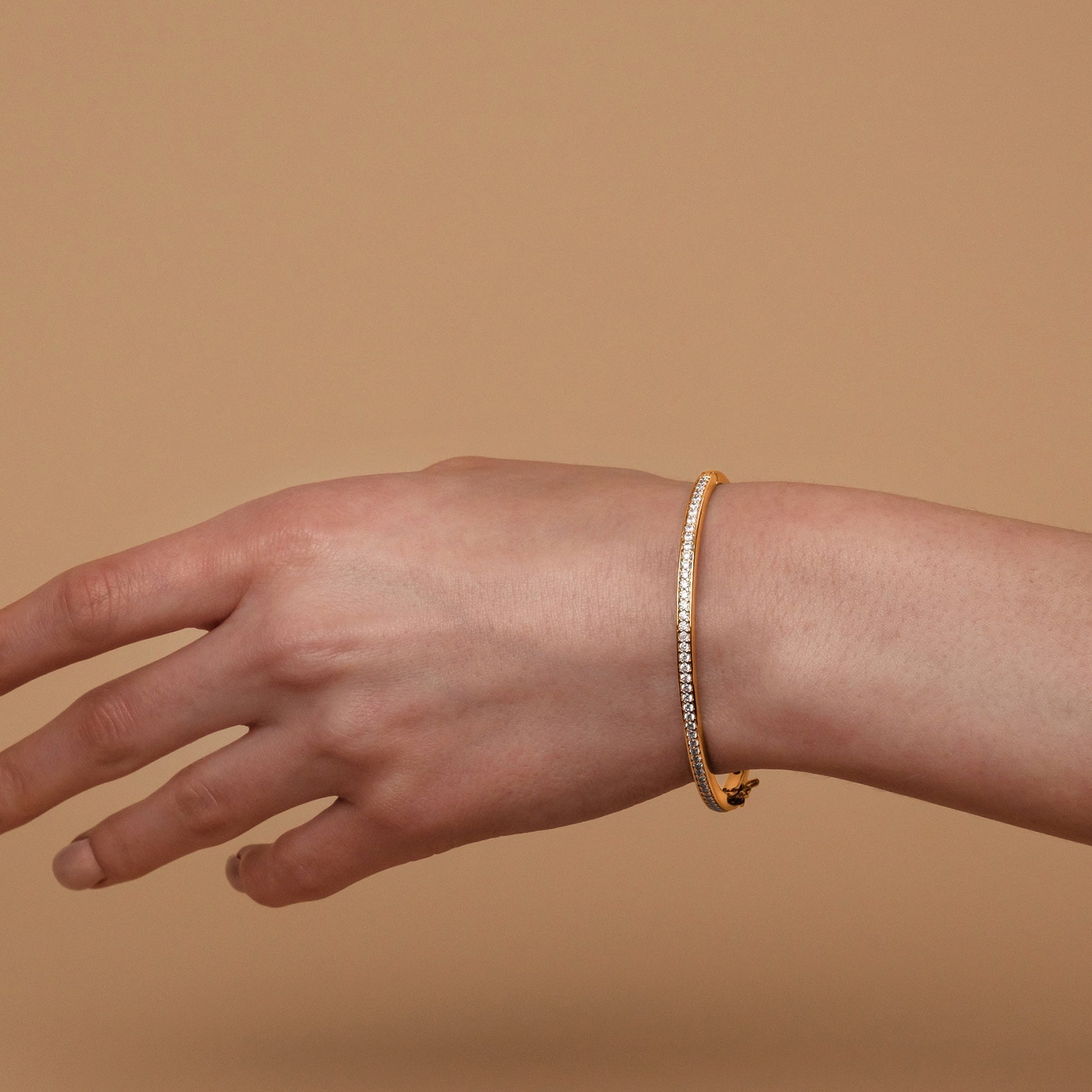 Our Lana Bangle is an essential piece of arm candy that you absolutely need in your jewelry box. Sleek and minimal with the subtle glimmer of the cubic zirconia, this bracelet can accompany you to any event or occasion.