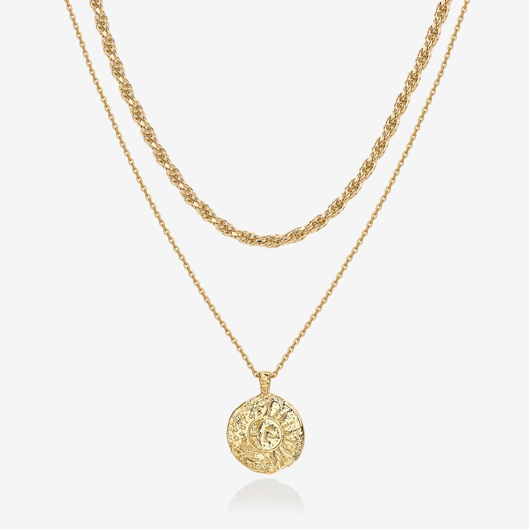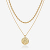 A layered style that you will love. This necklace features a Layered Medallion pendant necklace layered alongside a trendy Rope Chain Necklace. Contemporary, versatile, and stylish.