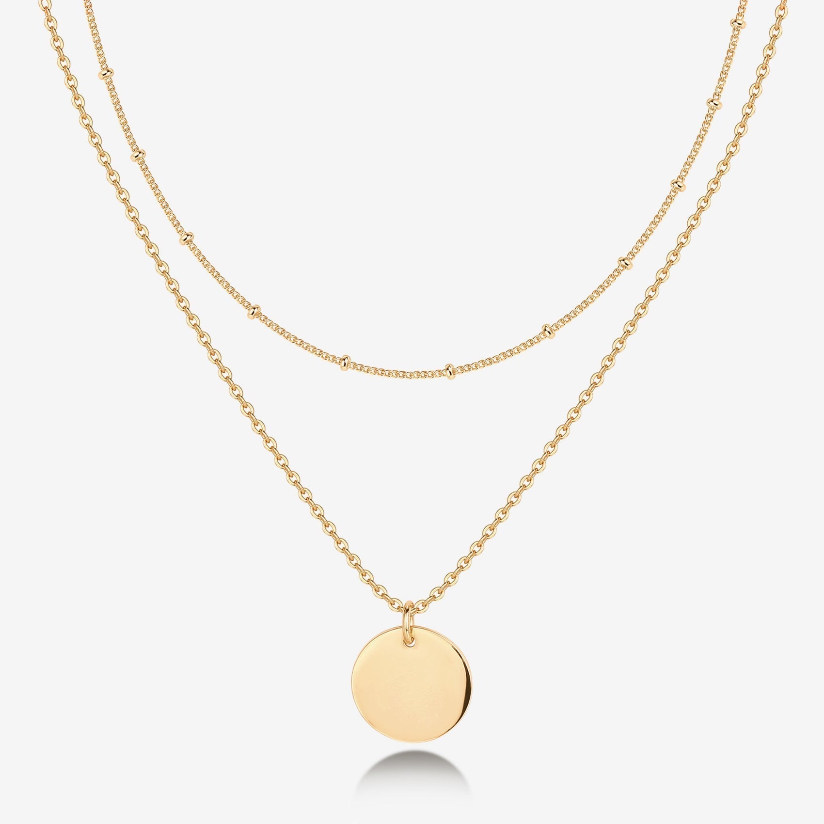 Simple, sophisticated and stylish—this classic coin pendant layered with a ball station necklace is ideal to wear on the daily.