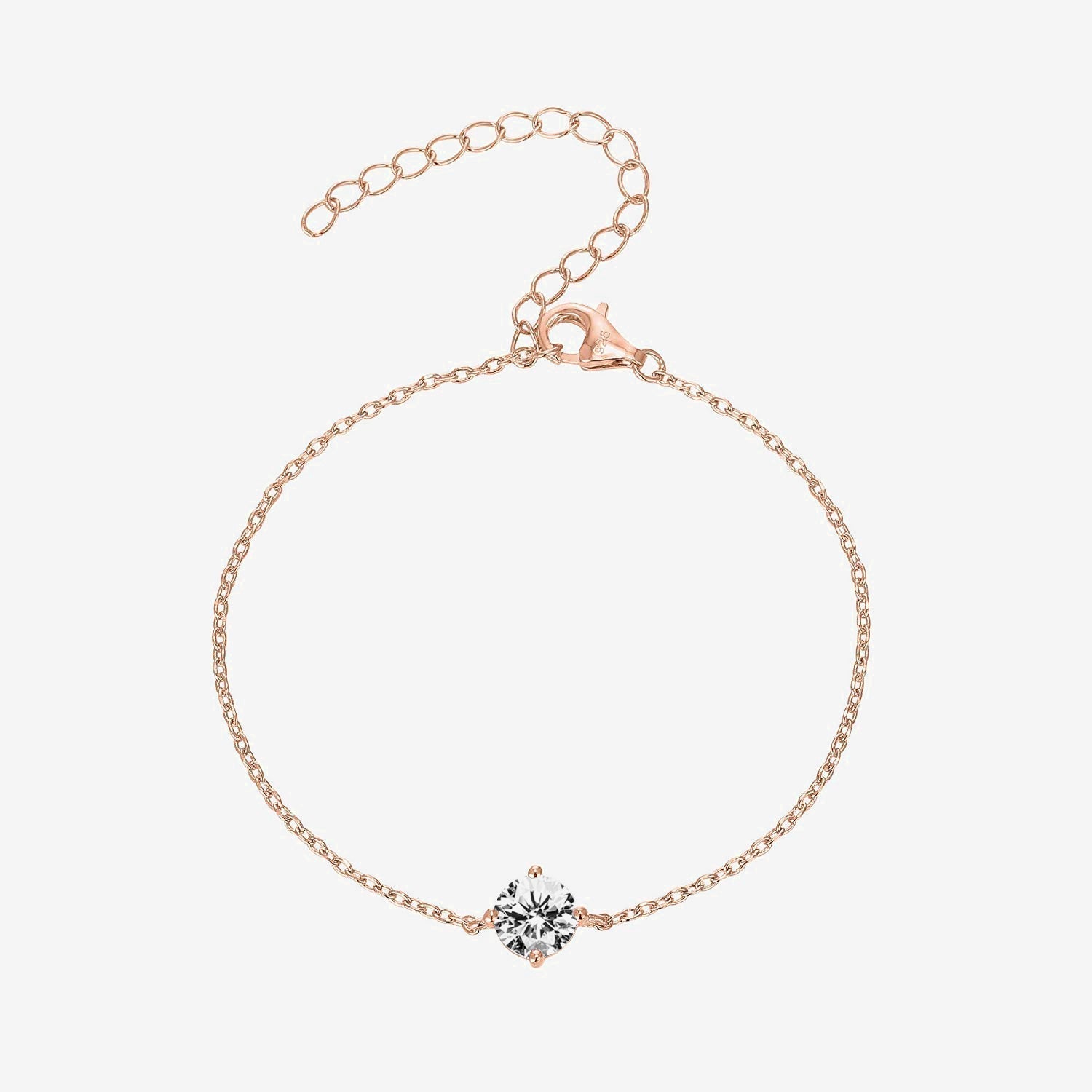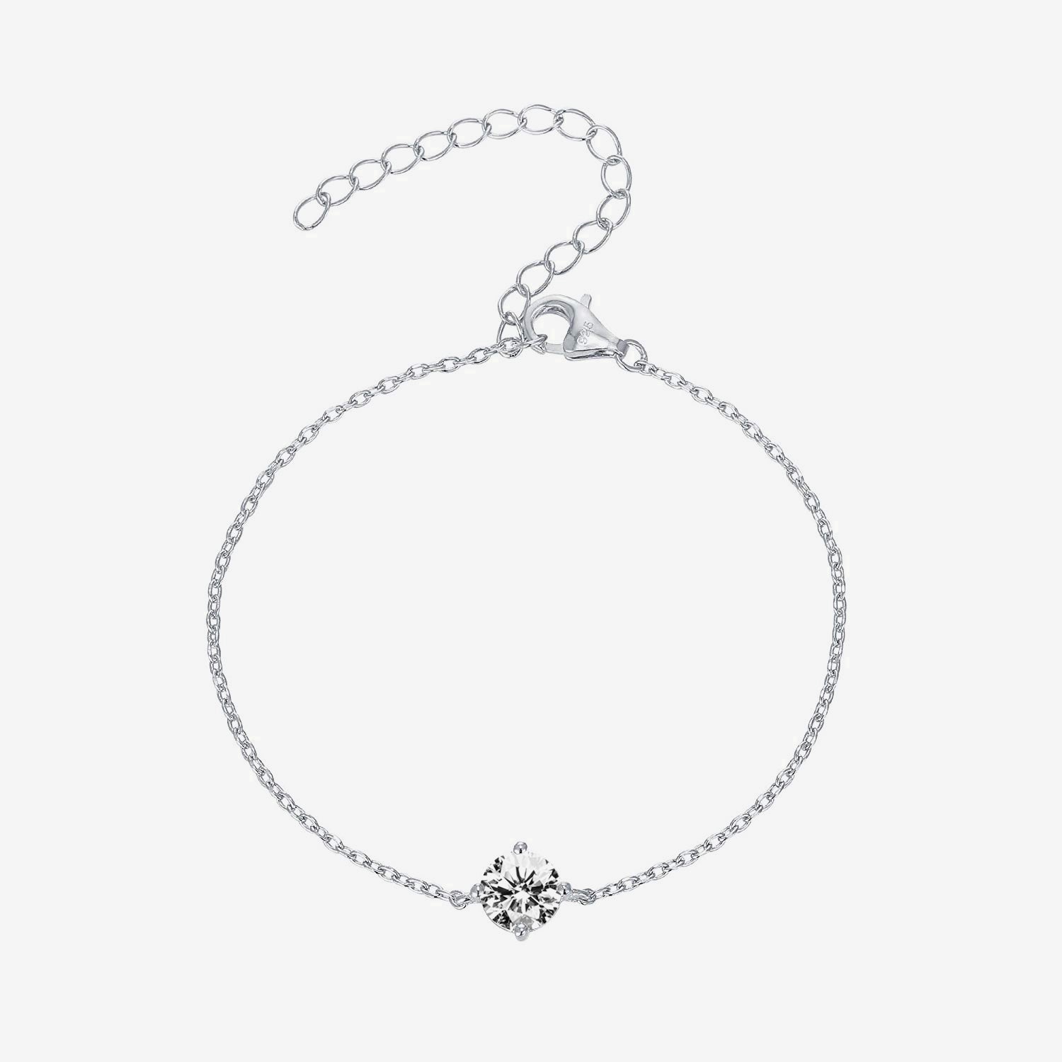 The ultimate combination of modern and classic. With a single prong set winter white glimmering cubic zirconia paired with a strong yet delicate chain, this sterling silver bracelet is the perfect piece to wear on its own or to stack with your other favorites.
