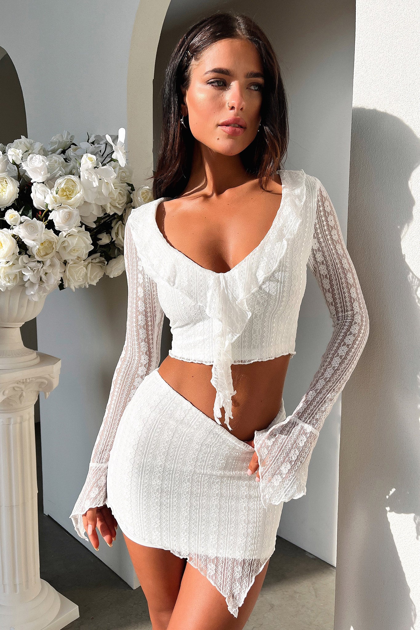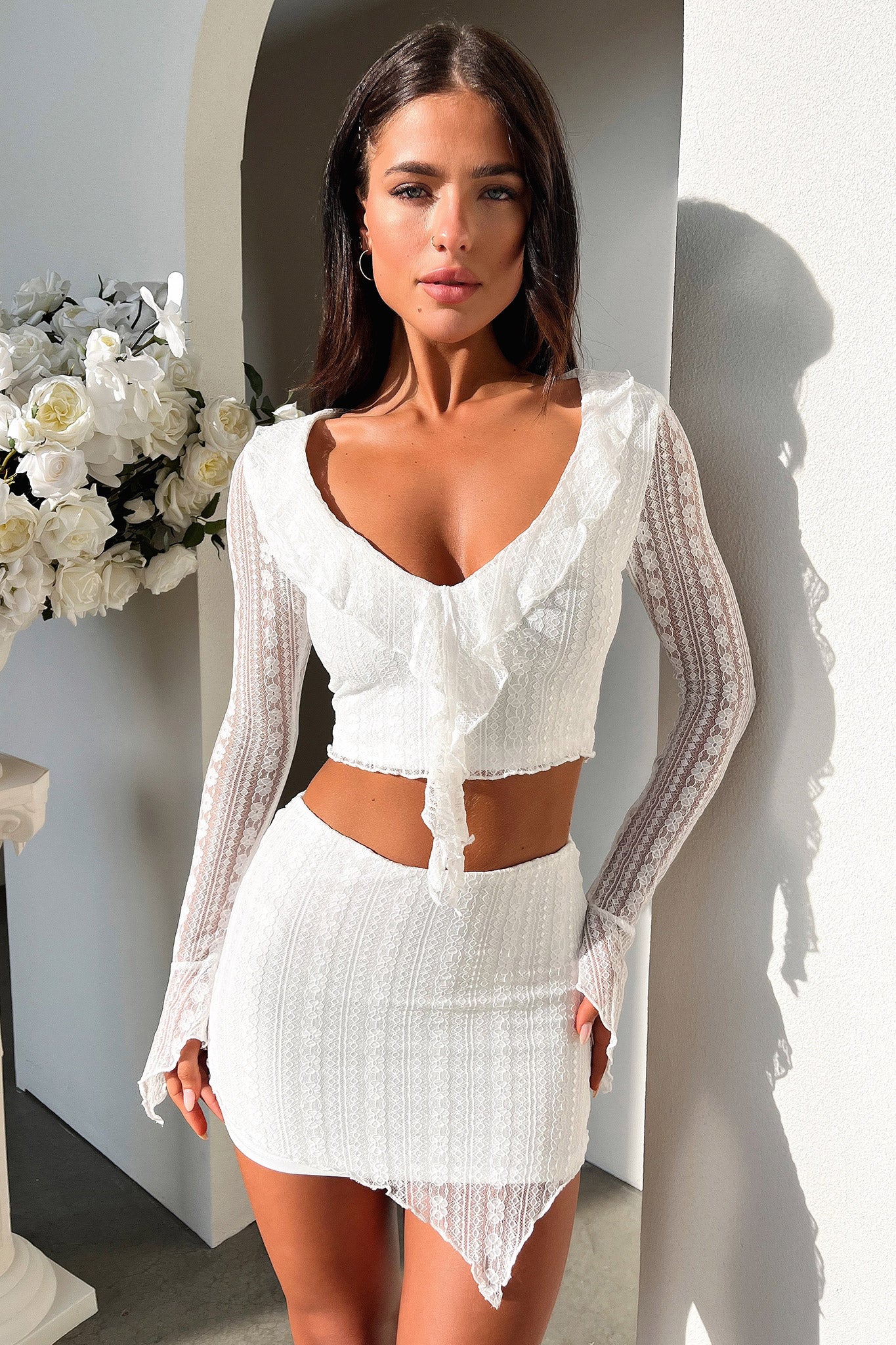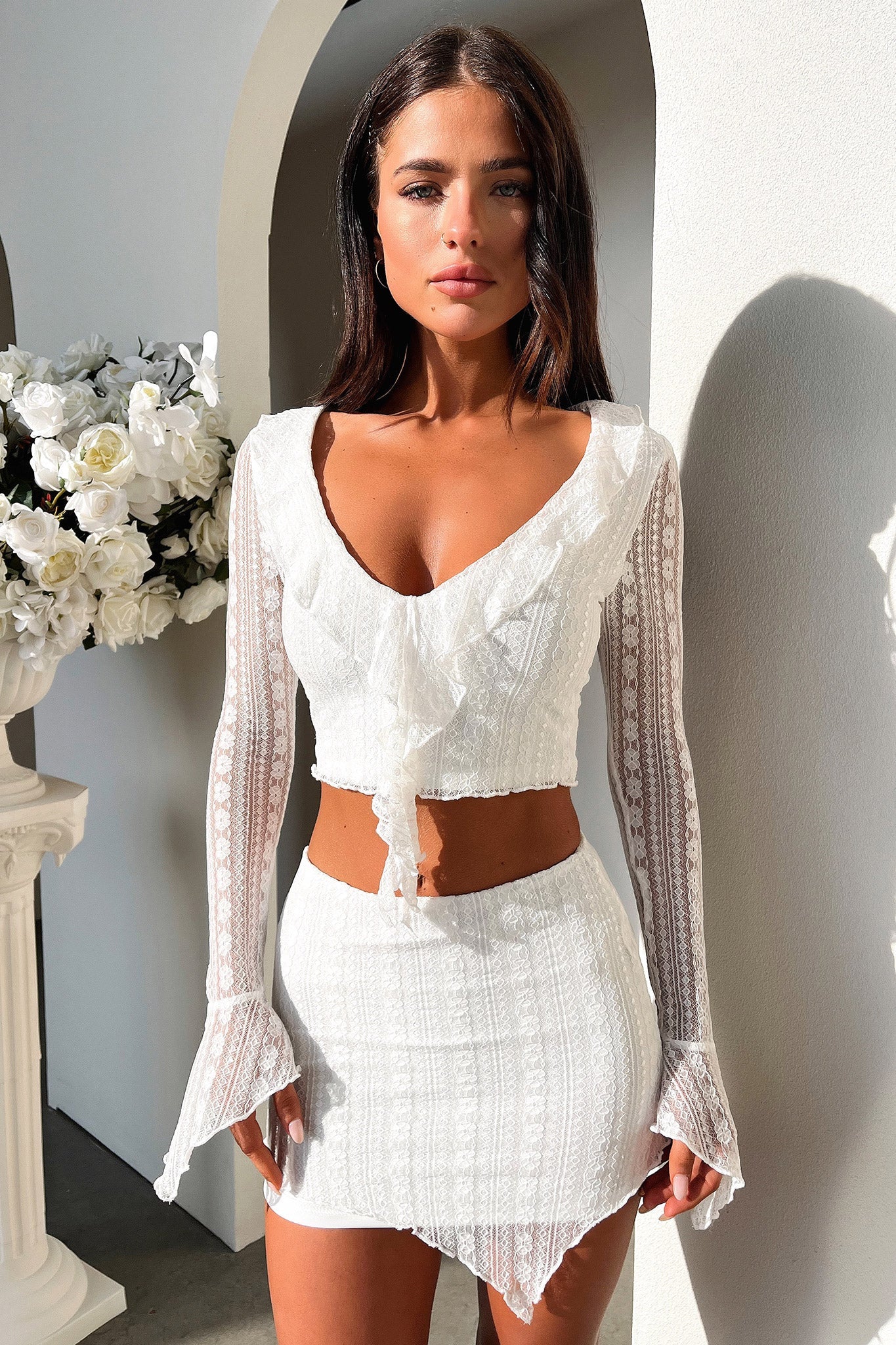 Look like a total babe in the Aperol Crop! This ultra-flattering crop top features a v-neckline, playful frill detail, and lace material with a double lining for extra coverage. It's perfect for sassy nights out, or simply adding a bit of sass to your daily look!