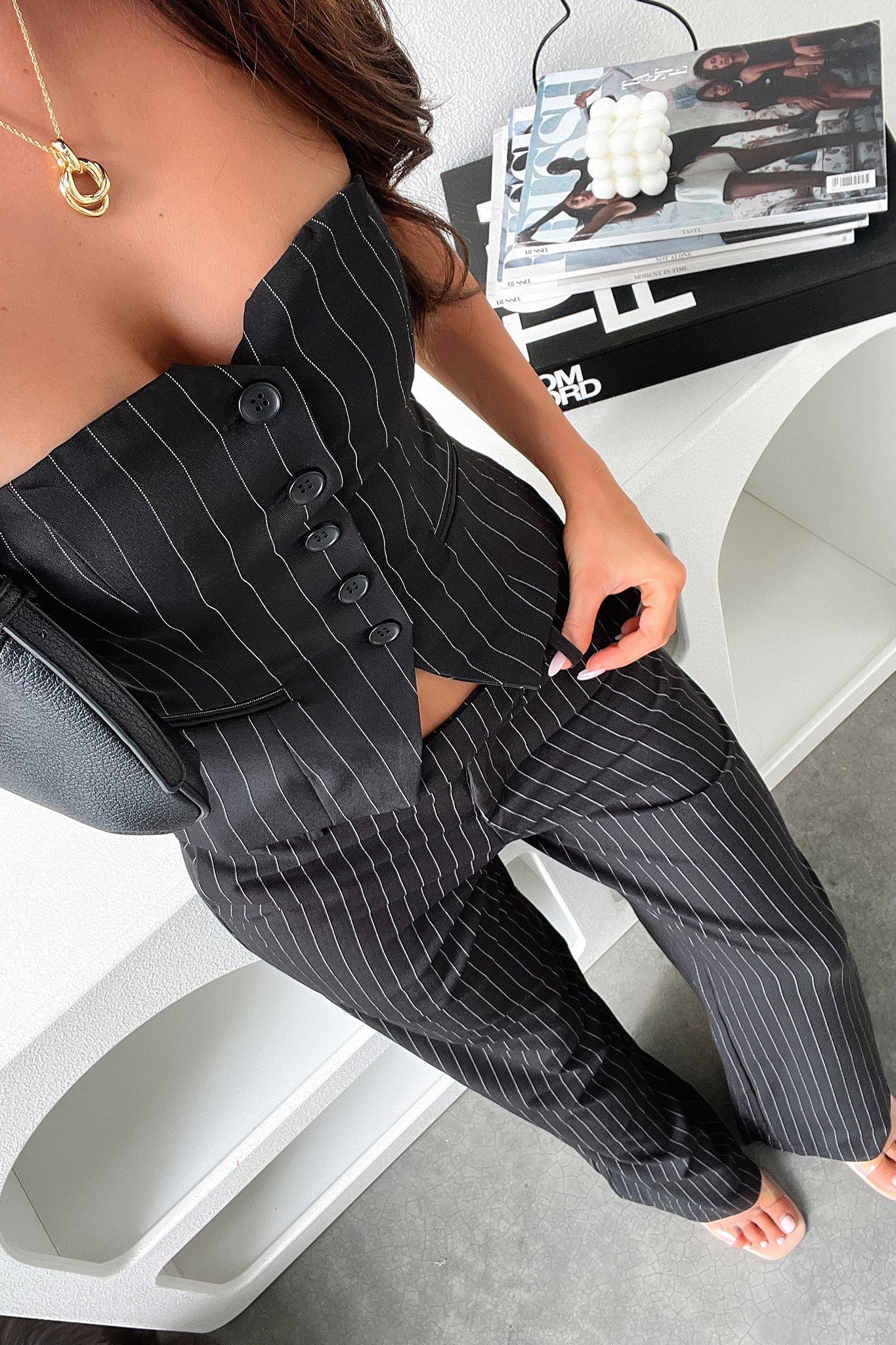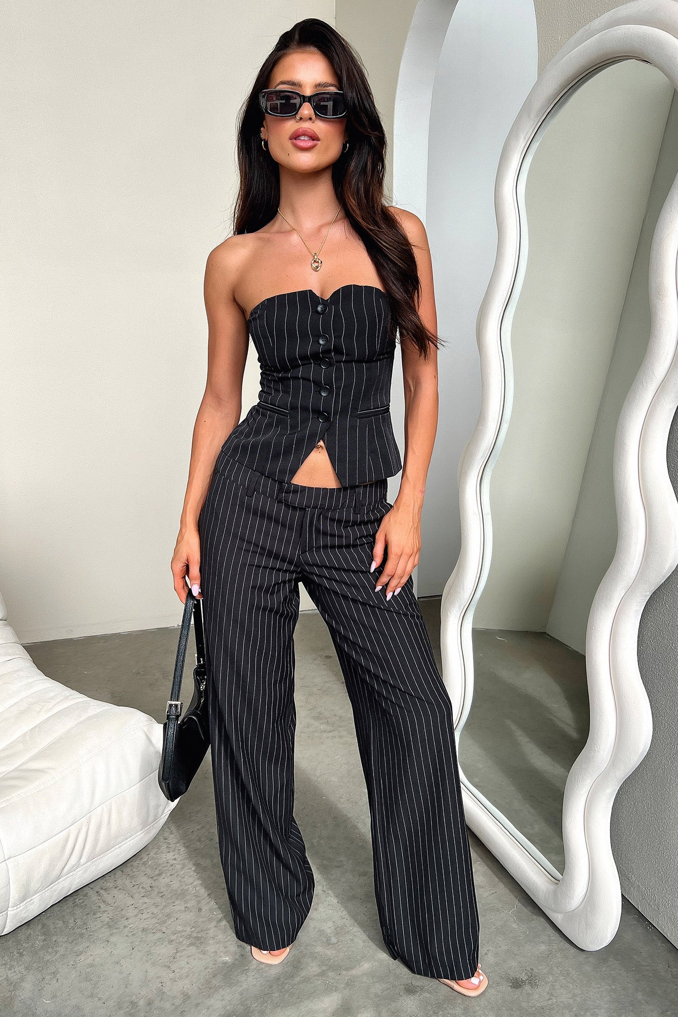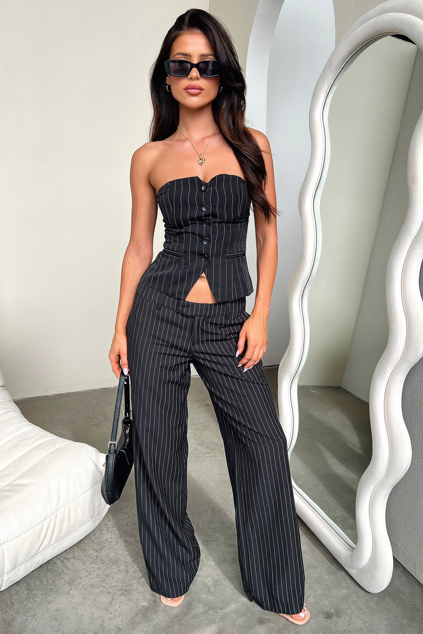 Stay one step ahead of the fashion game with the Janeeta Top! This strapless number is sure to make heads turn with its longline design and button up detail. The pinstripe pattern offers up a sophisticated air. Pair her with a black mini skirt to complete the look!