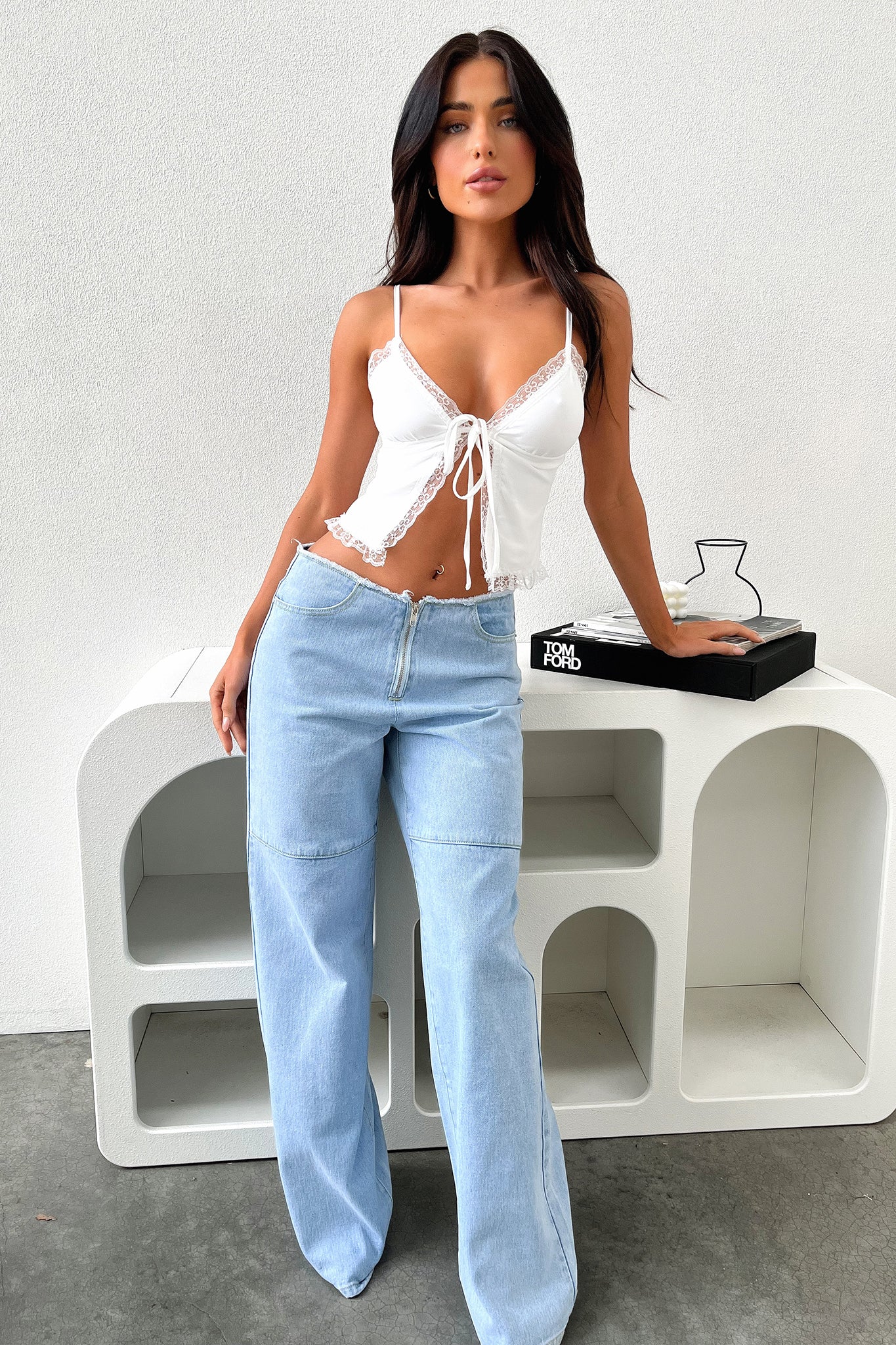 Beach days, music festivals, and outdoor brunches - the Karissa Top is made for them all! Featuring the cutest lace detailing, this top will turn heads with its tie up front and adjustable straps. Double lined for maximum comfort, this piece is perfect for a cute and casual look when paired with jeans. Get ready to slay the day away!