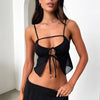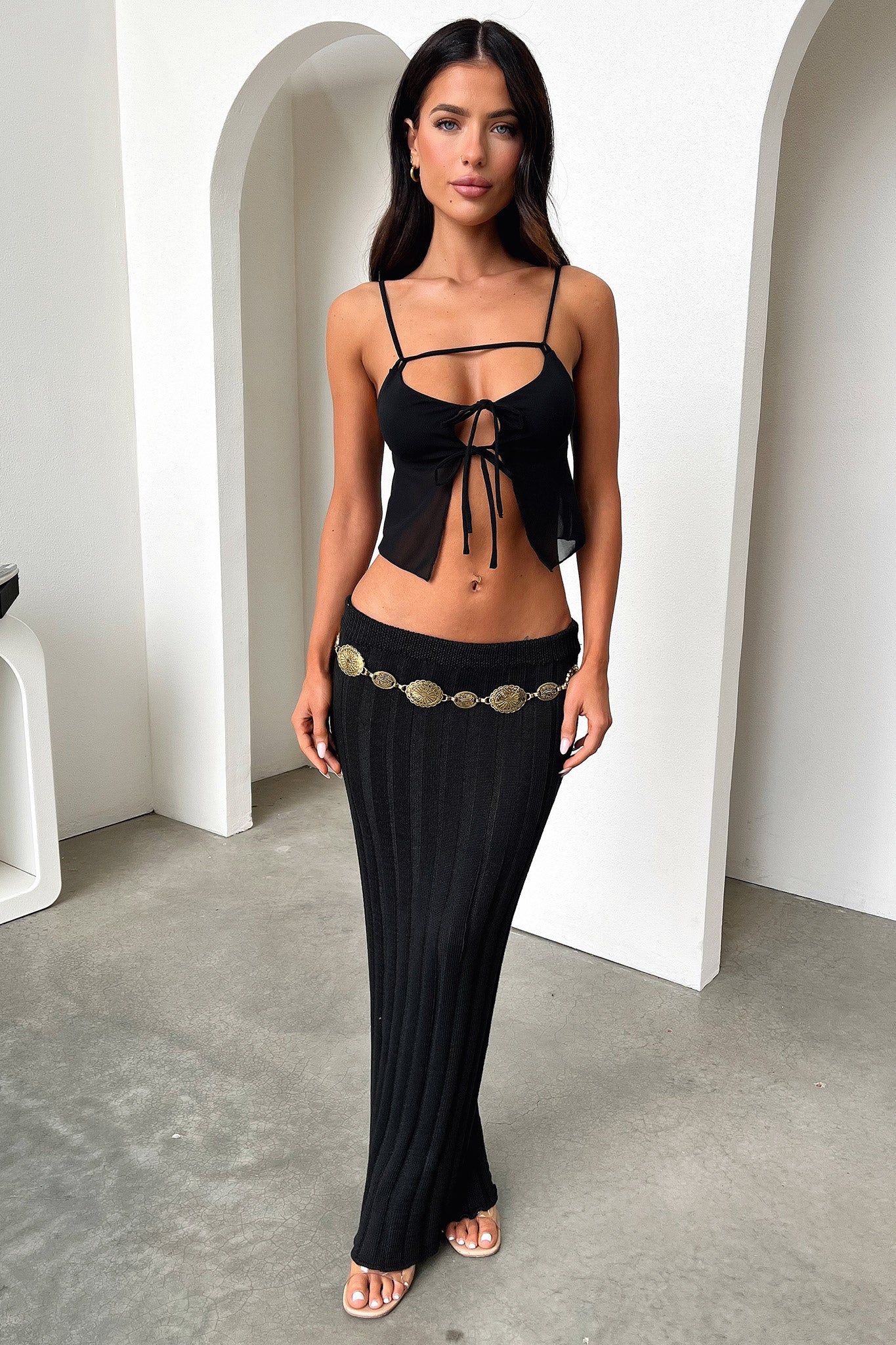 Add a twist to your dinner date outfit with our Liotta Top! This top features a double lined bust, a mesh back for a unique touch, and adjustable straps for the perfect fit. The tie up detail in the front adds a playful touch. She is the perfect match for your favourite pair of jeans!