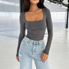 Look dazzling in this sleek black bodysuit! It features a square neckline, double lining for extra support, a two button closure at underneath and long sleeves for an extra layer of warmth. Match her with your go to denim jeans and boots.