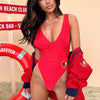 Make waves and save lives this Halloween with the Bae Bodysuit! Our double lined bodysuit features a sexy plunge neckline, low back, and high cut to make you the ultimate lifeguard. Don't forget the matching jacket for an A+ lifeguard look!