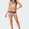 Boa Mesh Drawstring Mini Skirt