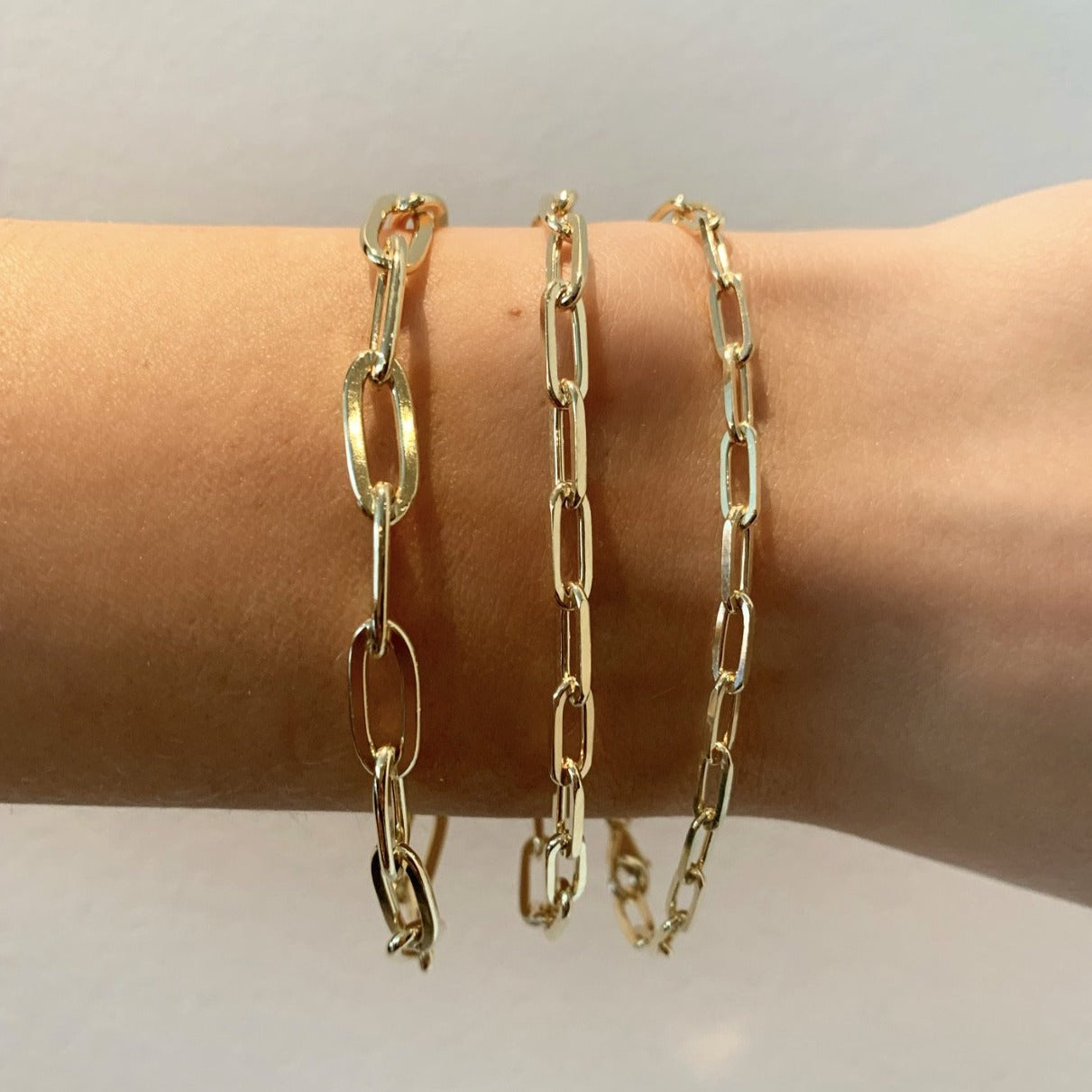 The smallest of 3 sizes in our signature Gold Vermeil everyday paperclip bracelet.