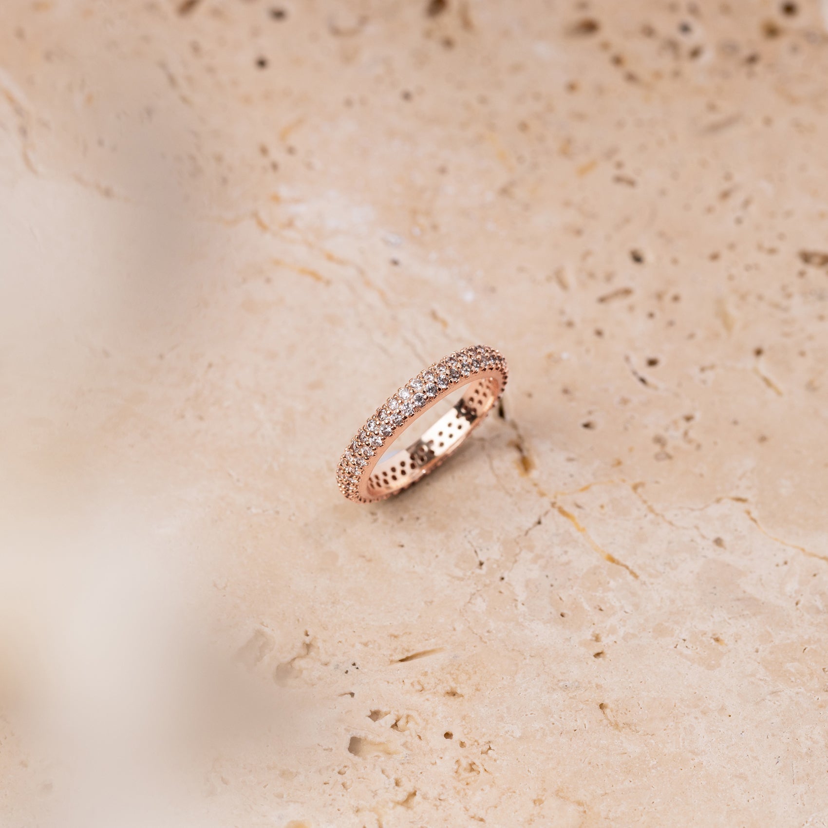 The more the merrier with our beautiful Cleo ring. A double-row eternity band that makes a statement while remaining subtle. You NEED this ring in your jewelry box.