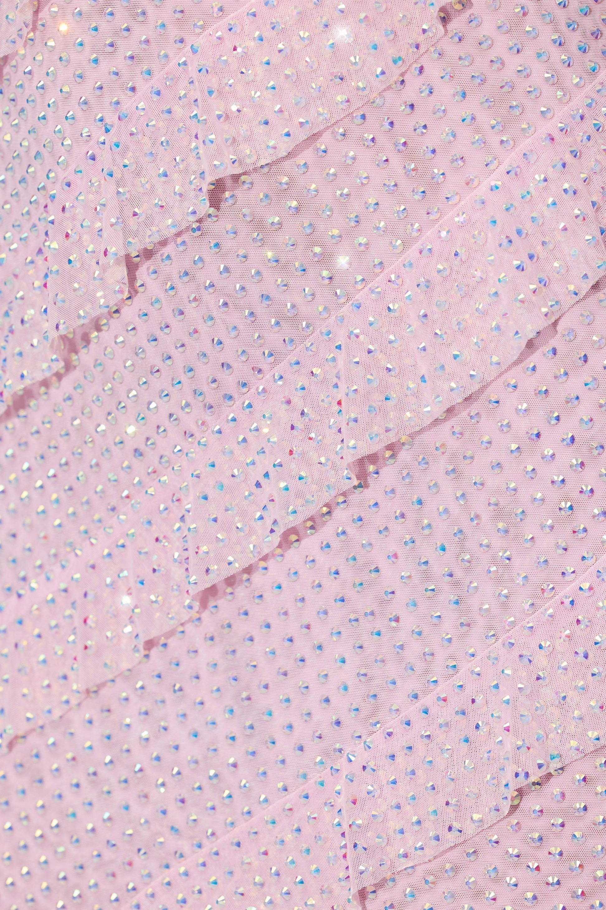 Embellished Strapless Ruffle Maxi Dress in Soft Pink
