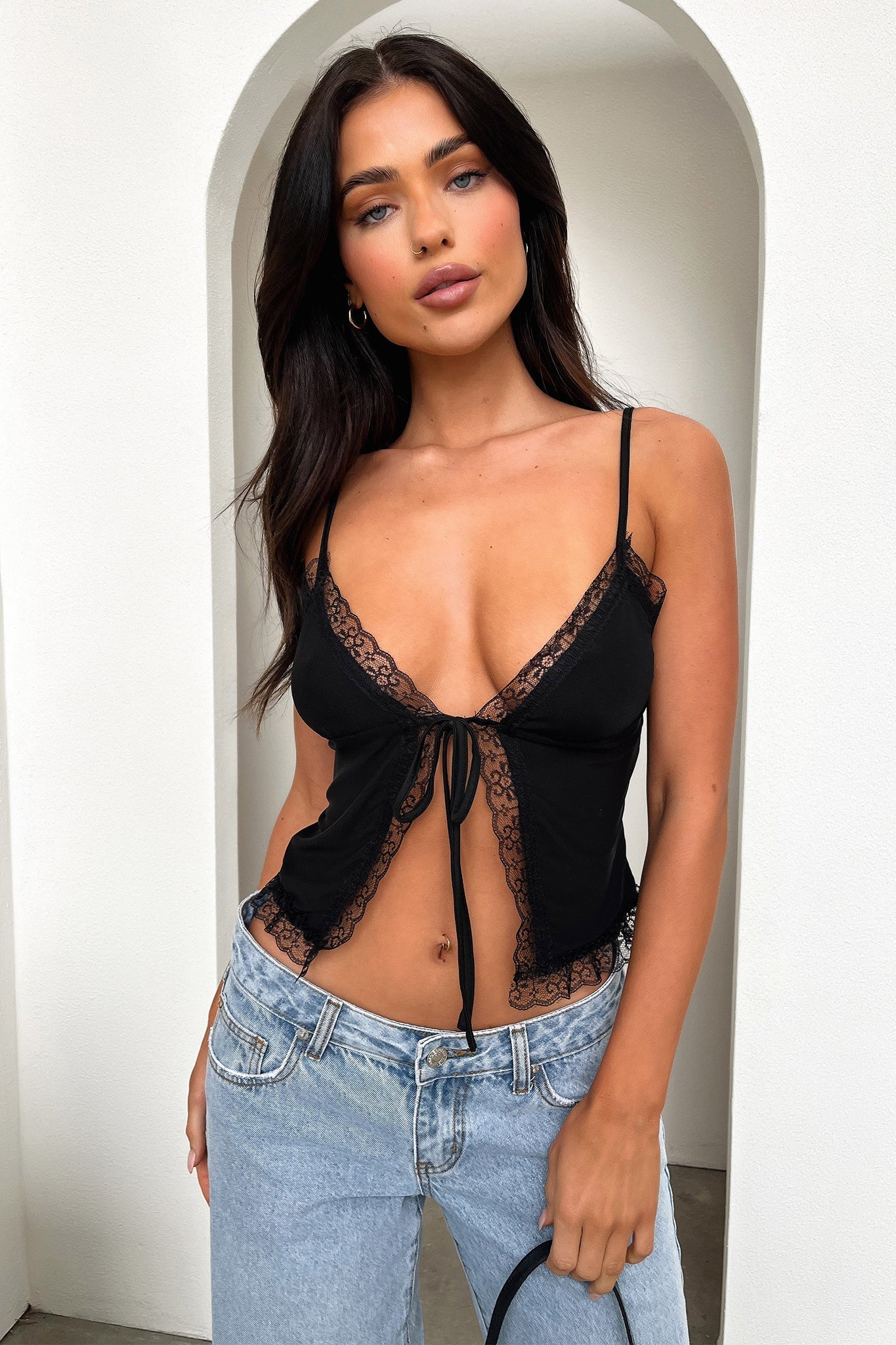 Beach days, music festivals, and outdoor brunches - the Karissa Top is made for them all! Featuring the cutest lace detailing, this top will turn heads with its tie up front and adjustable straps. Double lined for maximum comfort, this piece is perfect for a cute and casual look when paired with jeans. Get ready to slay the day away!