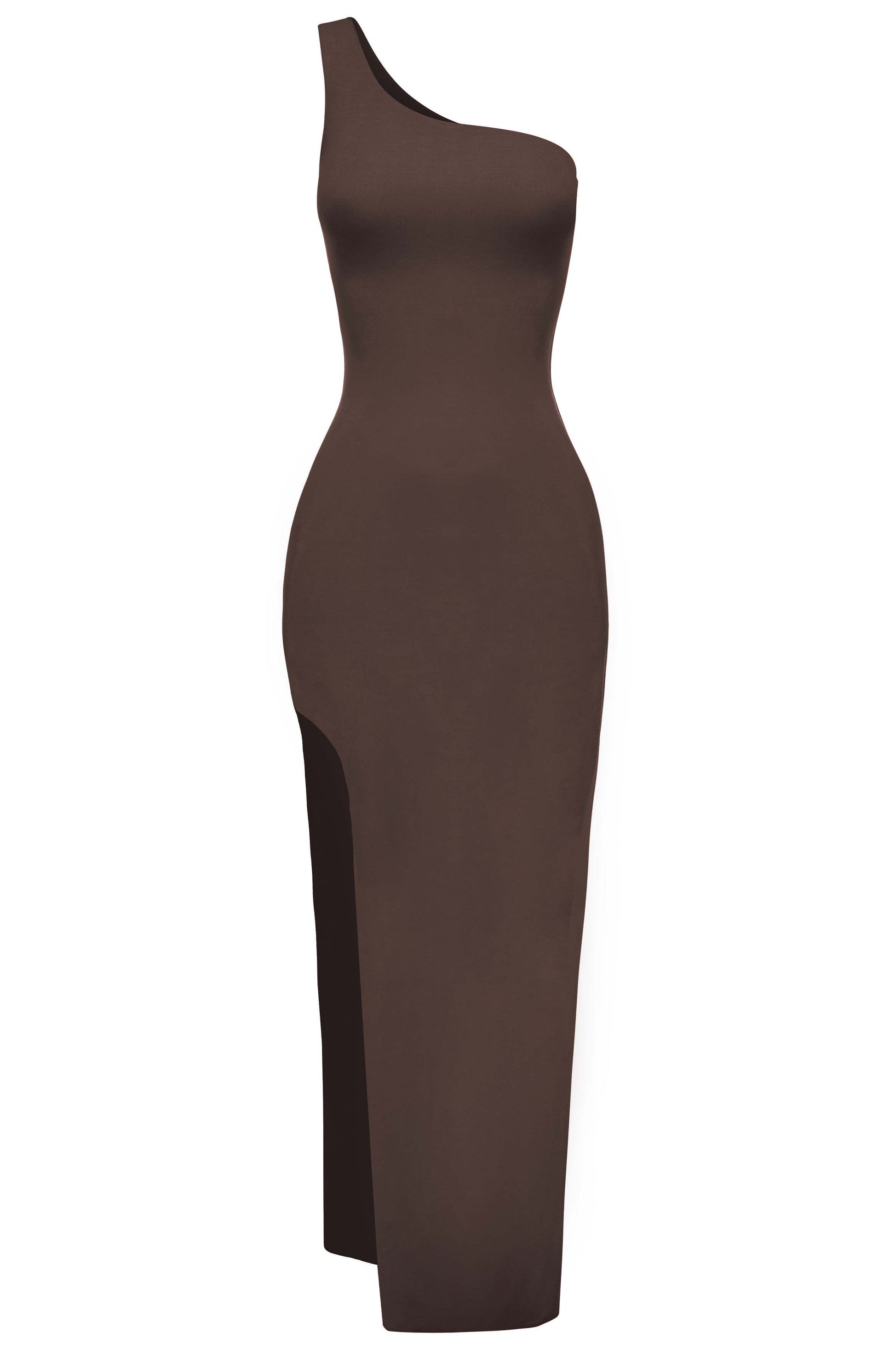 Double lined with a buttery soft, second skin feel, our brand new London maxi is one to wear on repeat. This dress serves stretch and snaps back to shape to contour the body for your best fit ever. Complete with one shoulder strap and a sexy thigh high split, dress yours up with mules and gold jewellery or down with an oversized blazer and cool girl shades.