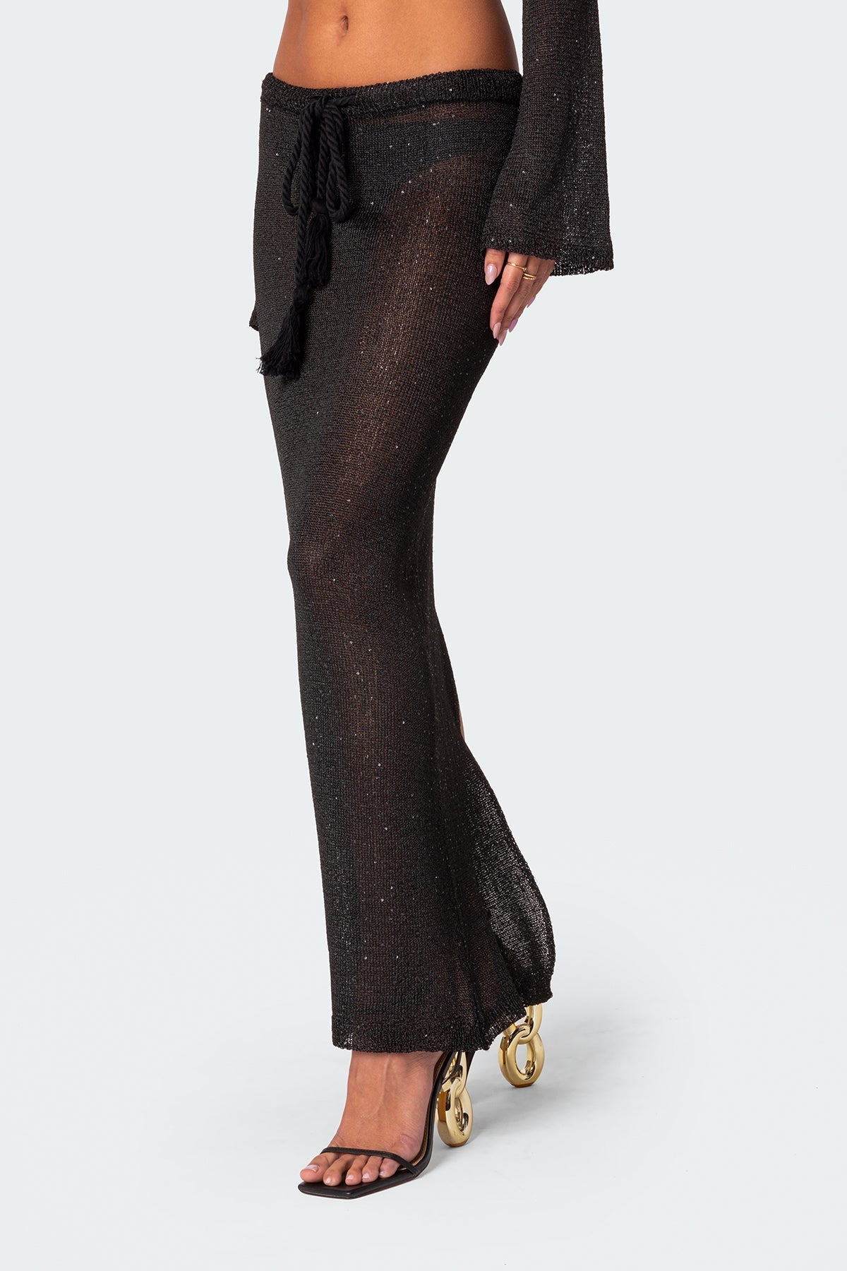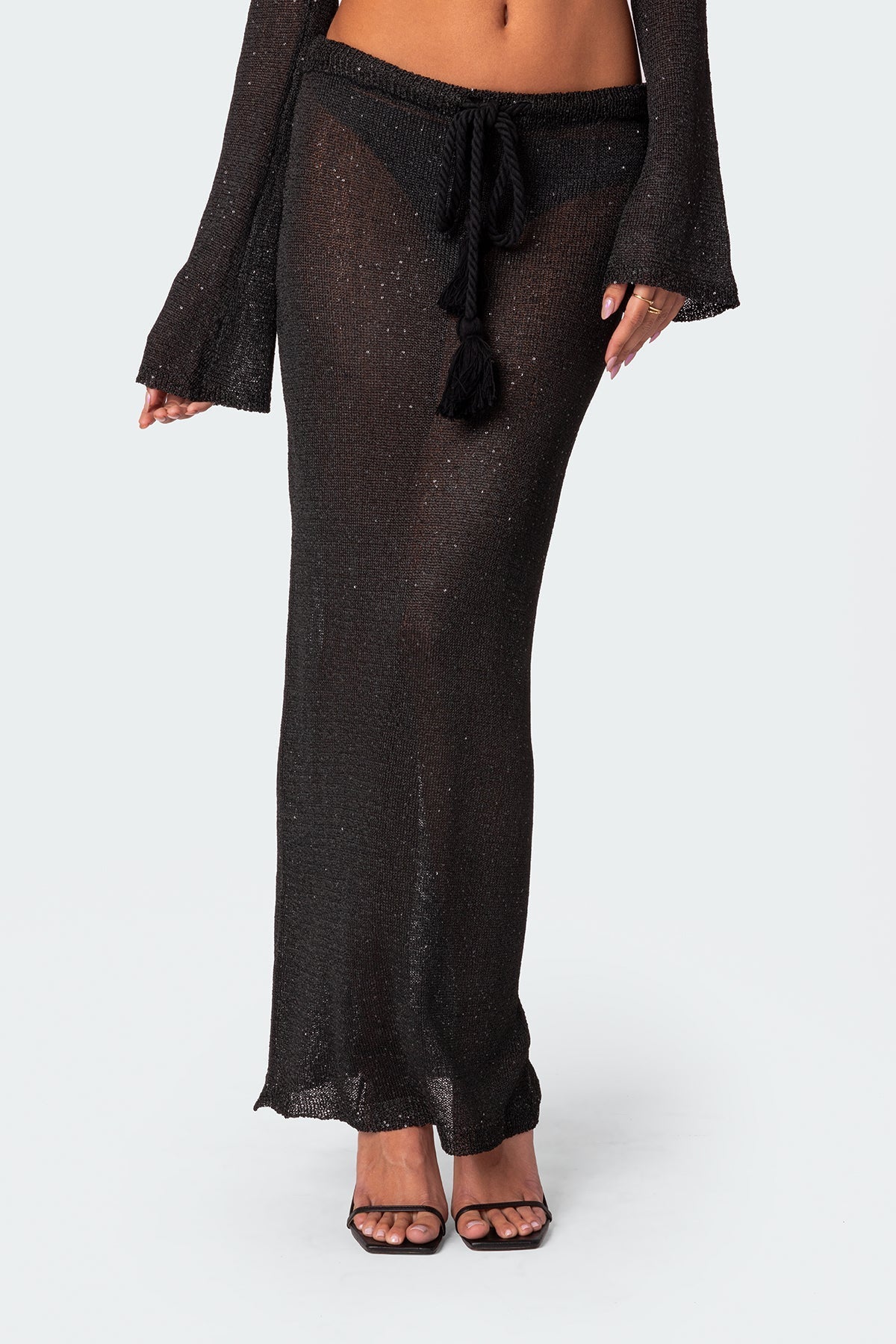 Micro Sequin Tassel Sheer Knit Maxi Skirt