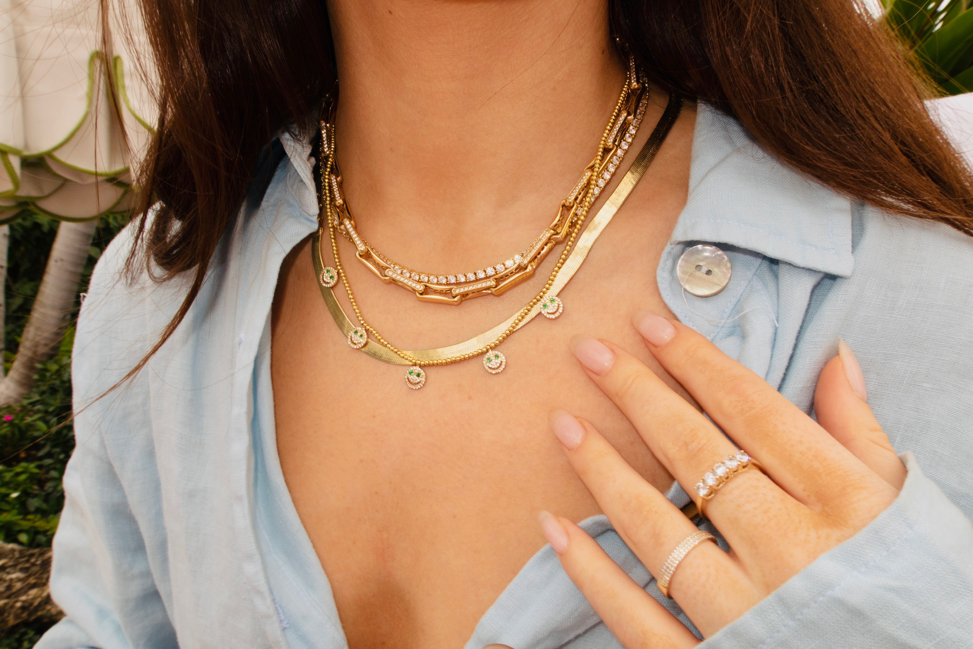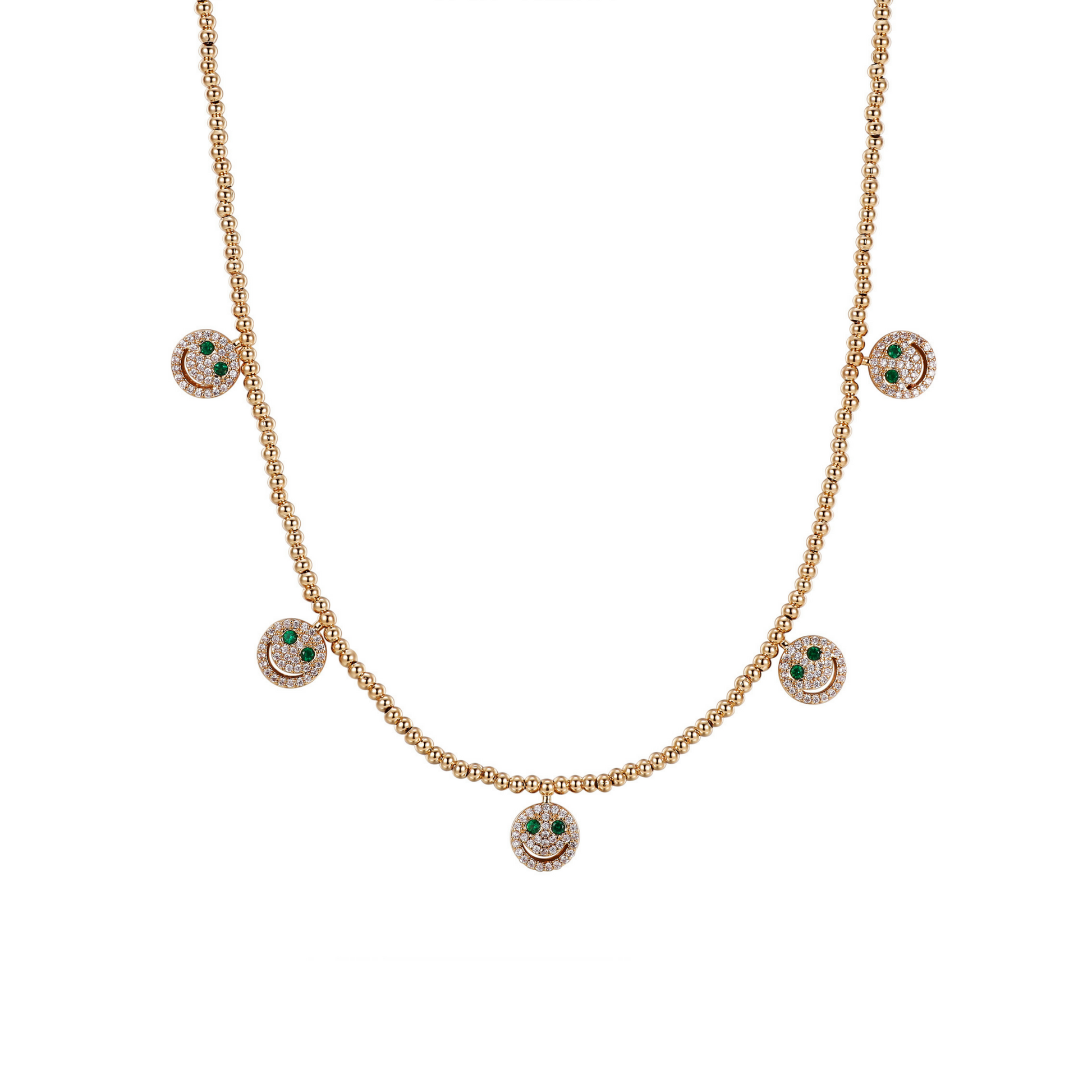 This staple 2mm beaded ball necklace consists of x5 happy faces perfect for everyday wear and layering with other pieces.