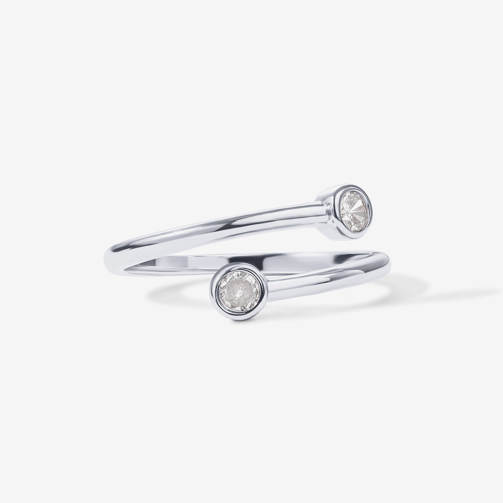 This stationed style ring for women features 2 bezel set premium cubic zirconia on a 1.2mm band giving it a perfect stackable ring look.