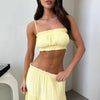 Summer vibes in the Selina Set! This gorg crop offers a frilly neckline with an elasticated band for lots of stretch, double lined material and thin adjustable straps. Style her with the matching skirt and a pair of White Sandals.