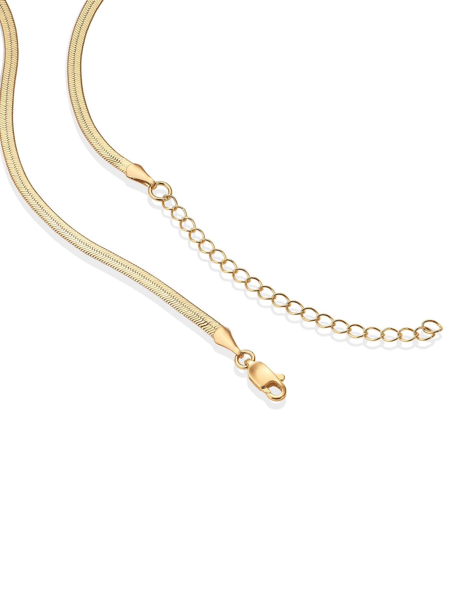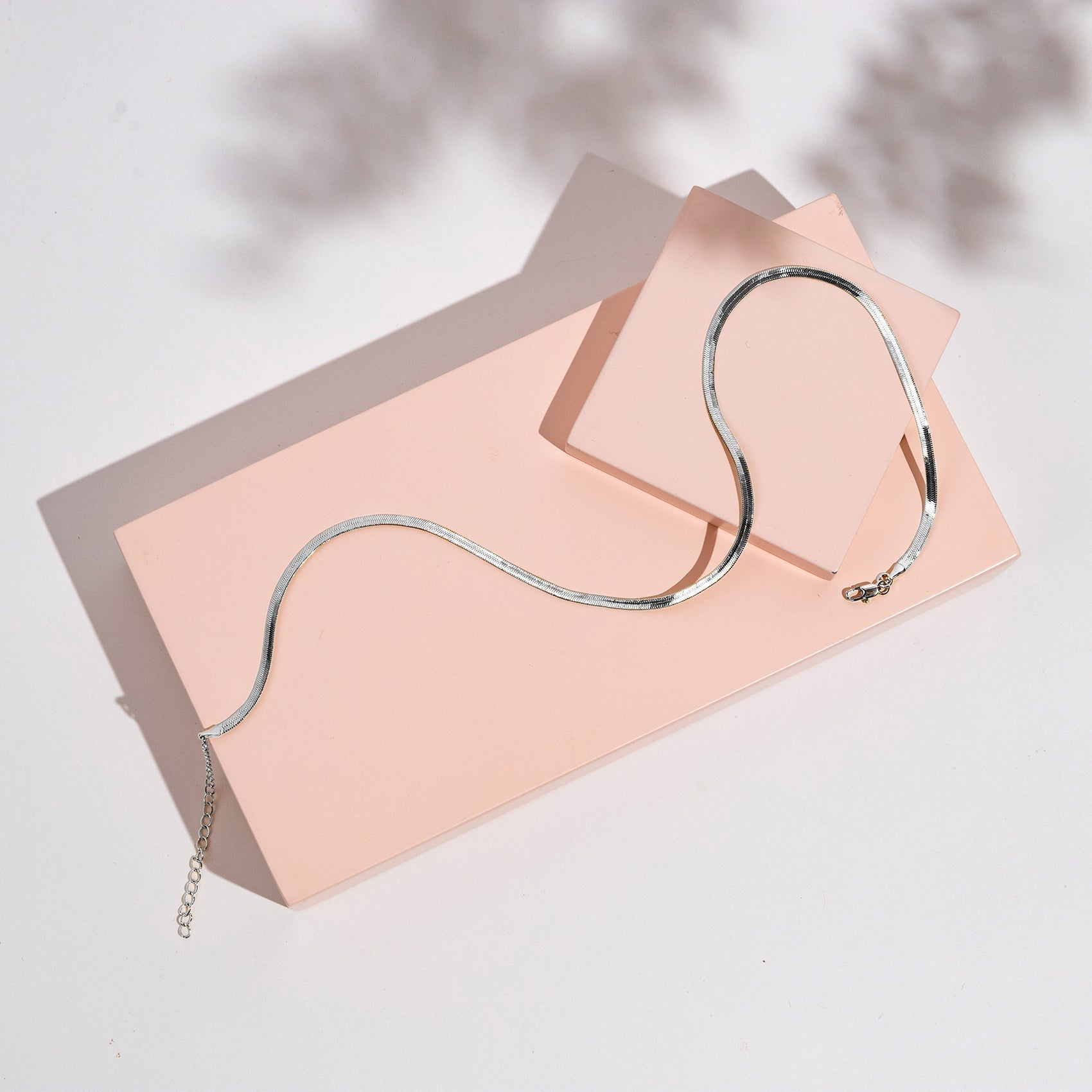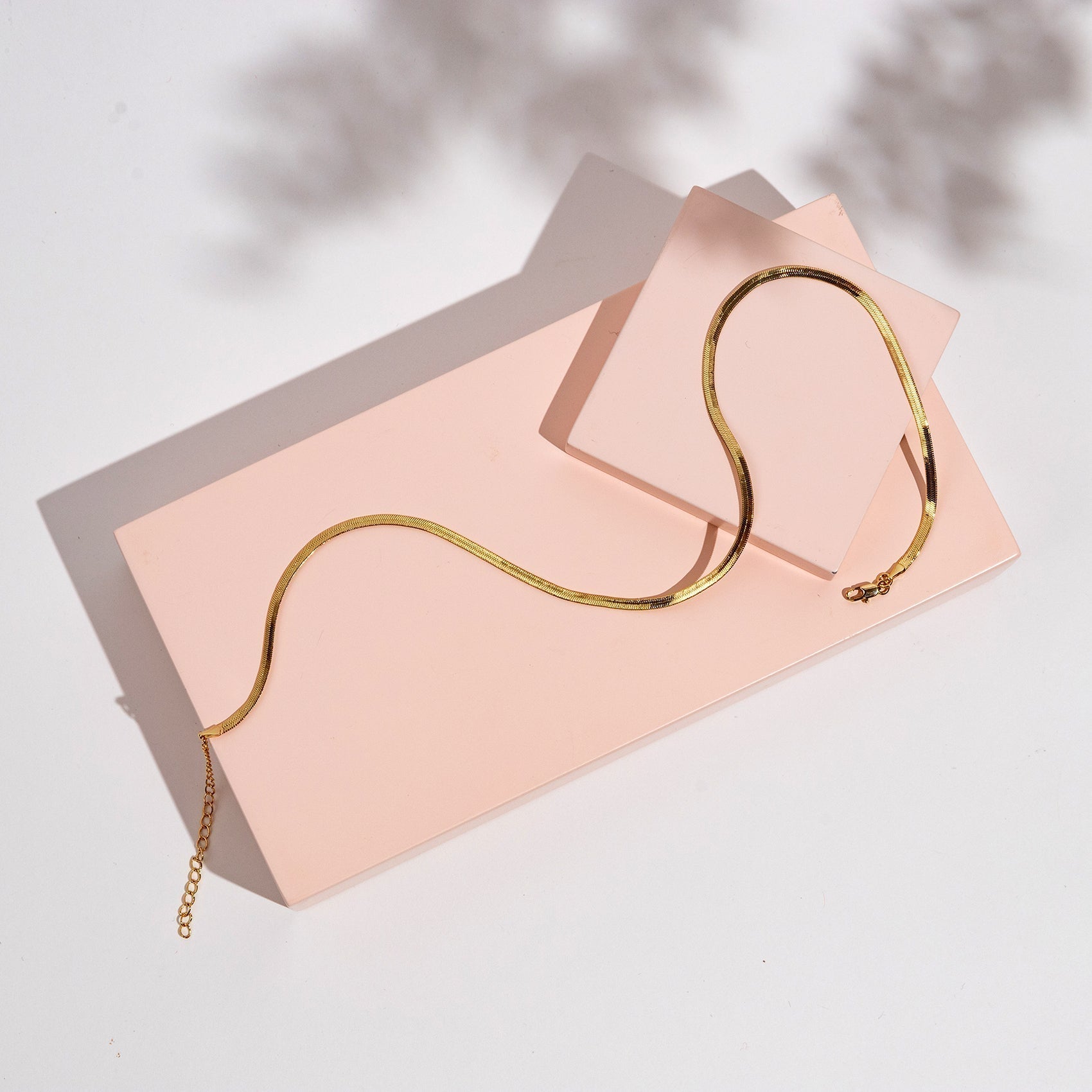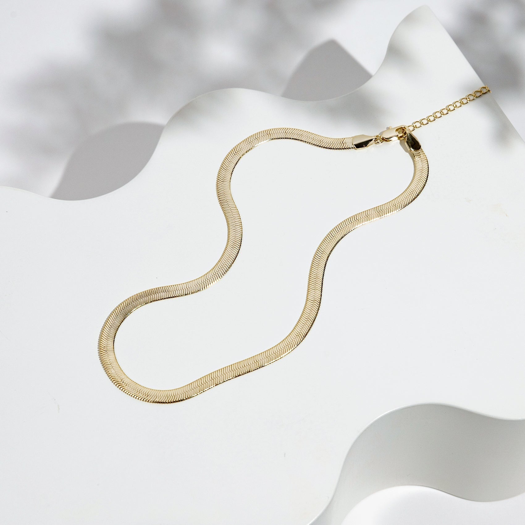 This adjustable Snake chain necklace has a minimalist design and comes in 14k yellow or white gold plating. It’s a great layering item, or perfect by itself!