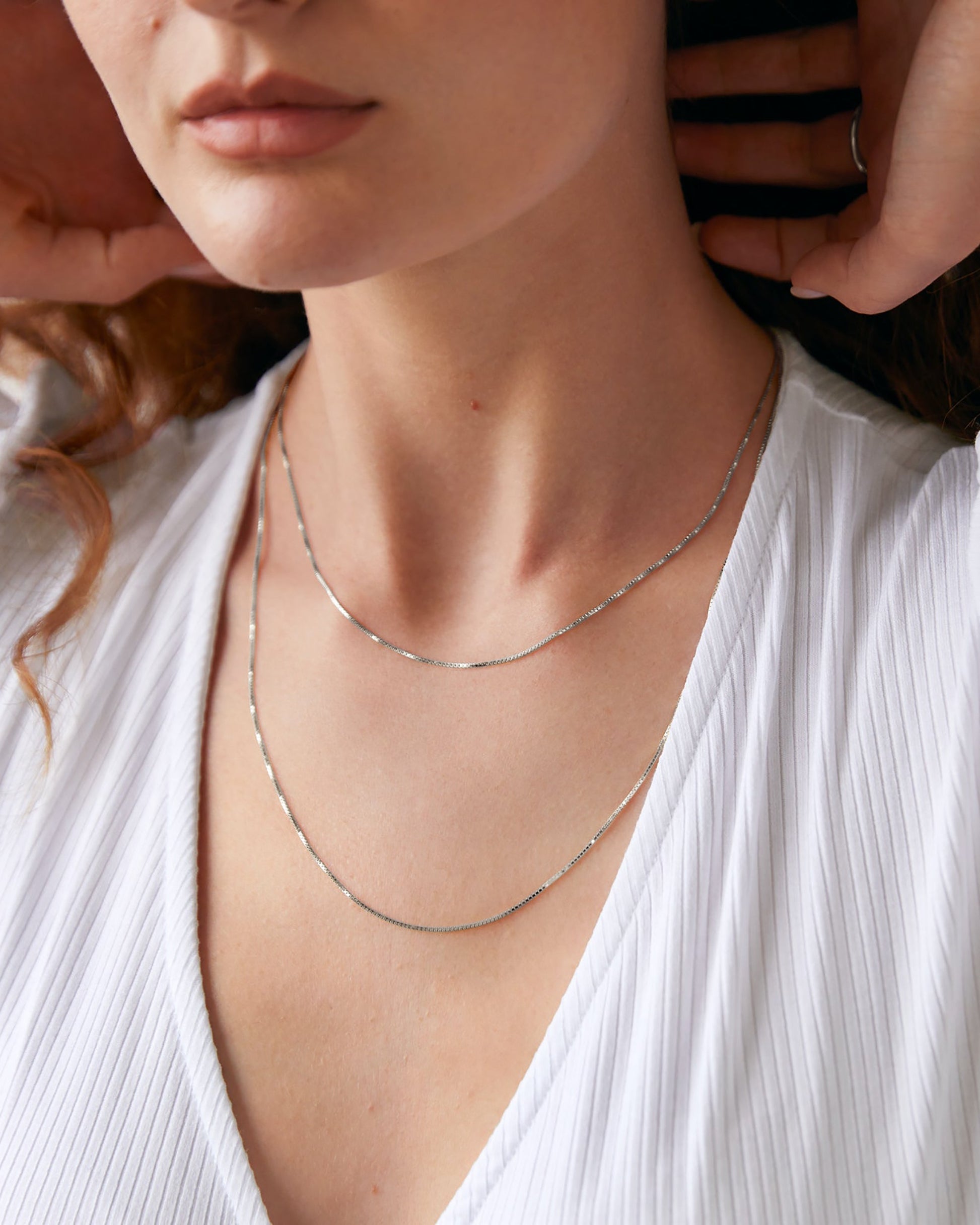 This medium-thick PAVOI Squarebox Chain is elegant and captures the spirit of both men and women. A bold square box chain link embodies the urban edge, making a stunning style statement.
