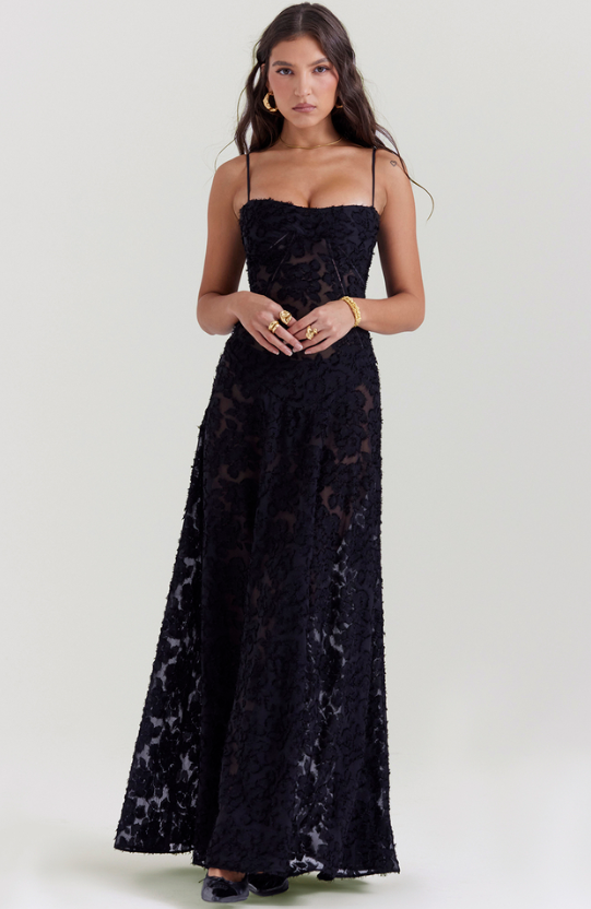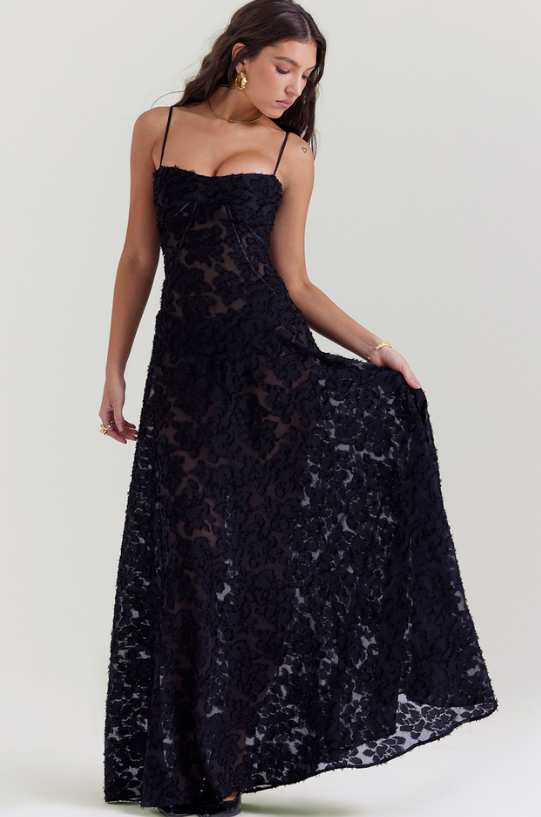 THE SEREN FLORAL LACE BACK MAXI DRESS