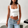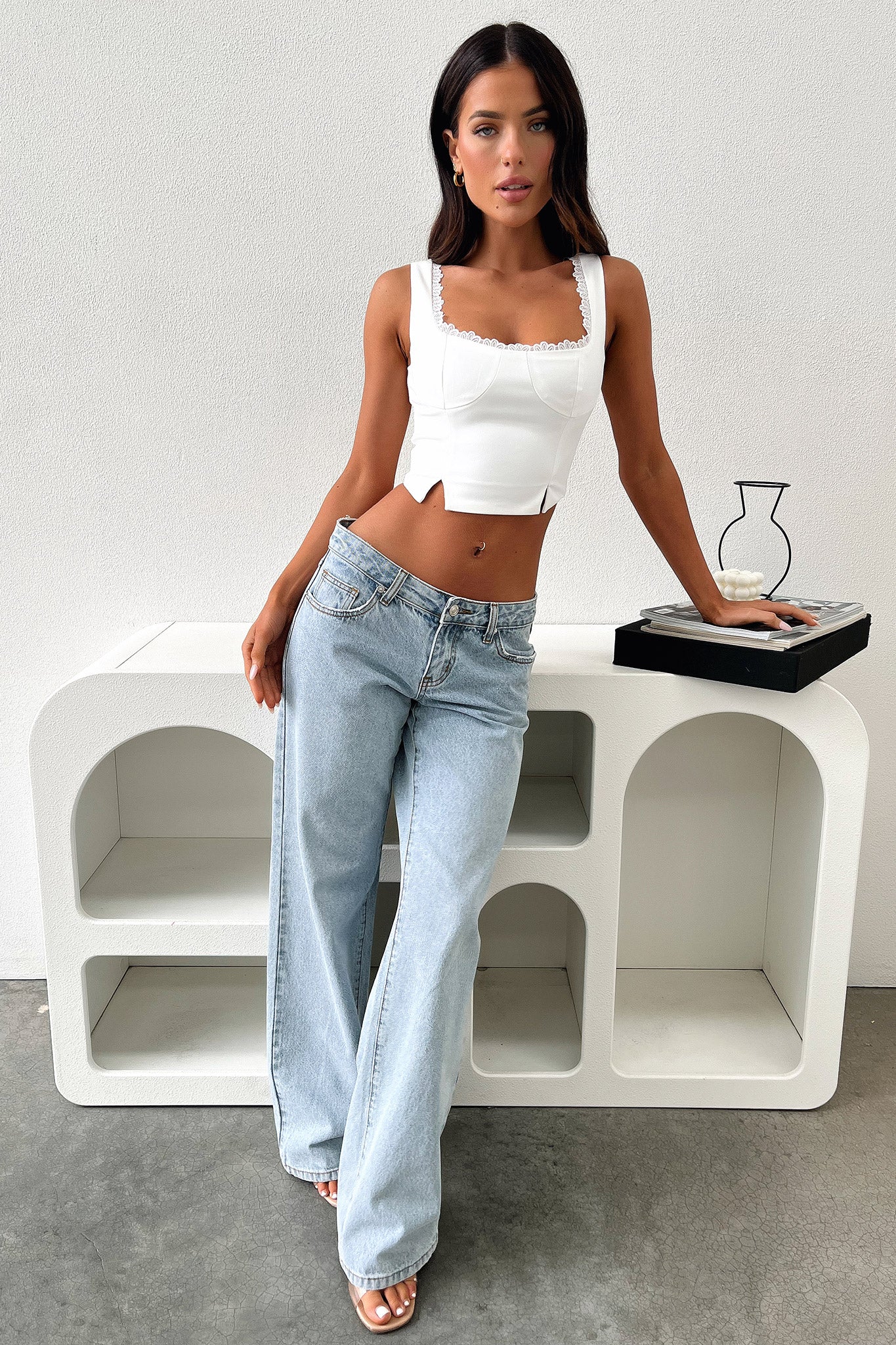 Add a fun and flirty touch to your wardrobe with the Varia Crop! Featuring delicate lace trimming, a body hugging fit, and stylish splits at the bottom, this top is perfect for pairing with low rise jeans for a casual, yet elevated look!