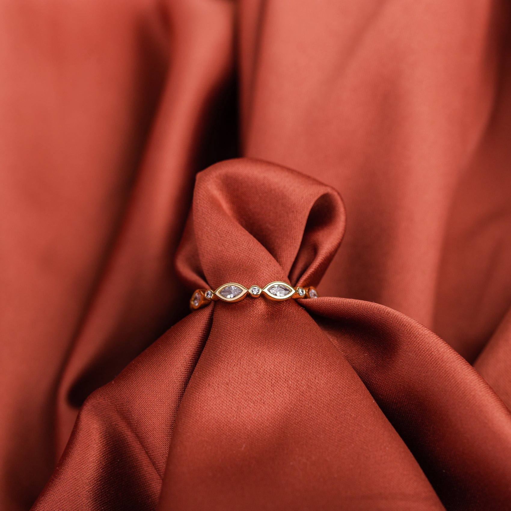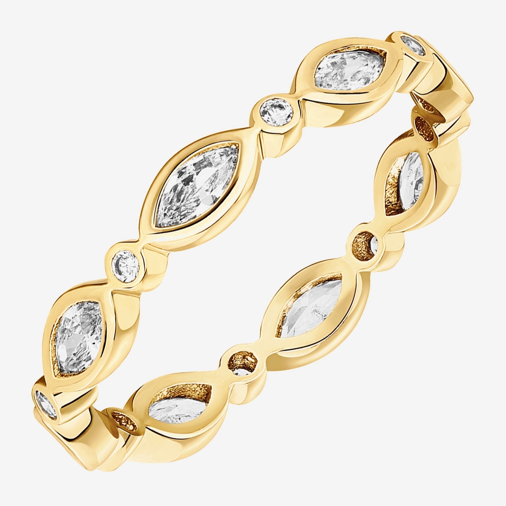Eternally beautiful. The PAVOI 14K gold-plated cubic zirconia stackable ring looks stunning paired with your other favorites or makes a statement all its own. Designed with the highest quality cubic zirconia, bezel set in an alternating marquise and round cuts, this eternity band is a modern, yet timeless work of art.